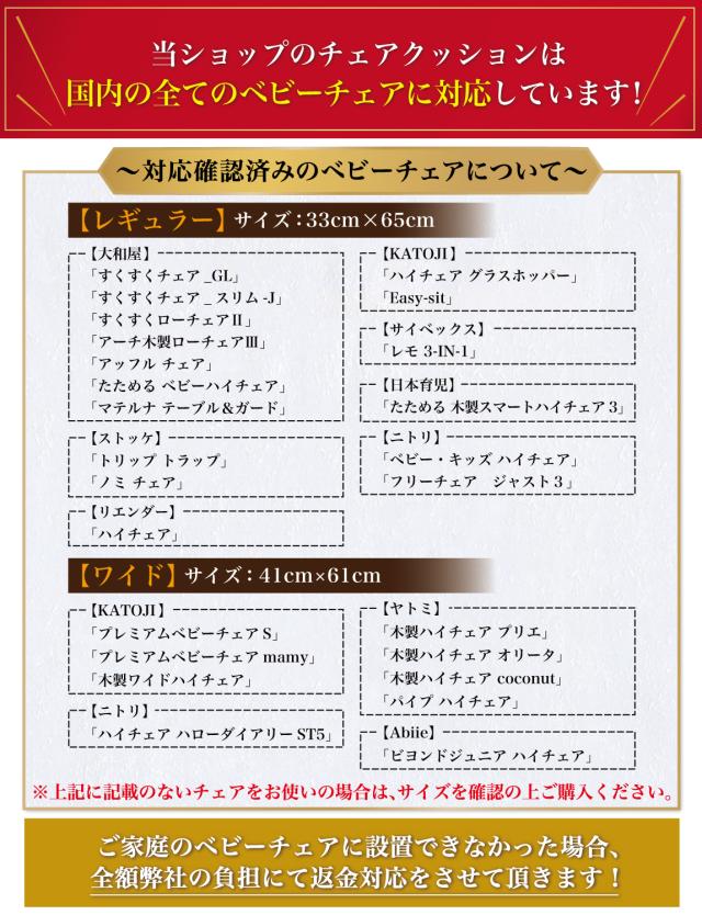 【ワイド】_[41cm×61cm] 【KATOJI】 「プレミアムベビーチェアS」 「プレミアムベビーチェアmamy」 「木製ワイドハイチェア」 【ヤトミ】 「木製ハイチェア プリエ」 「木製ハイチェア オリータ」 「木製ハイチェア coconut」 「パイプ ハイチェア」 【ニトリ】 「ハイチェア ハローダイアリーST5」 【Abiie】 「ビヨンドジュニア ハイチェア」 ※お問い合わせでよく頂くチェアに関して、 上記に一覧として記載をさせて頂きます。 |