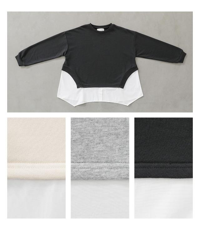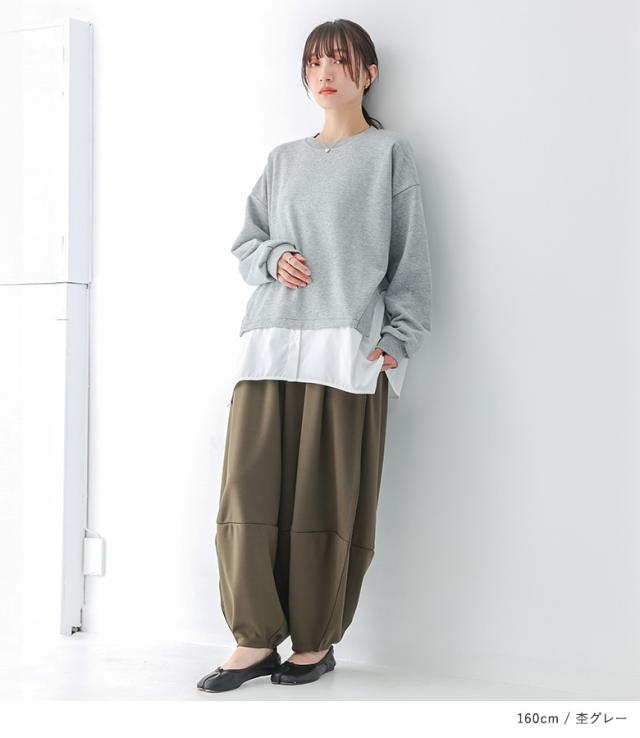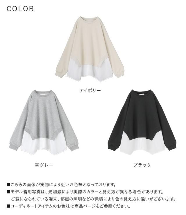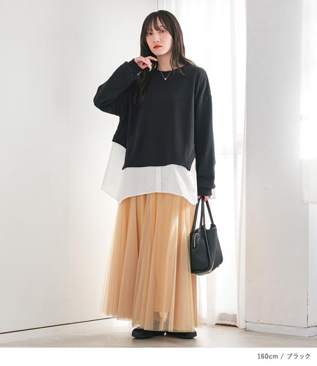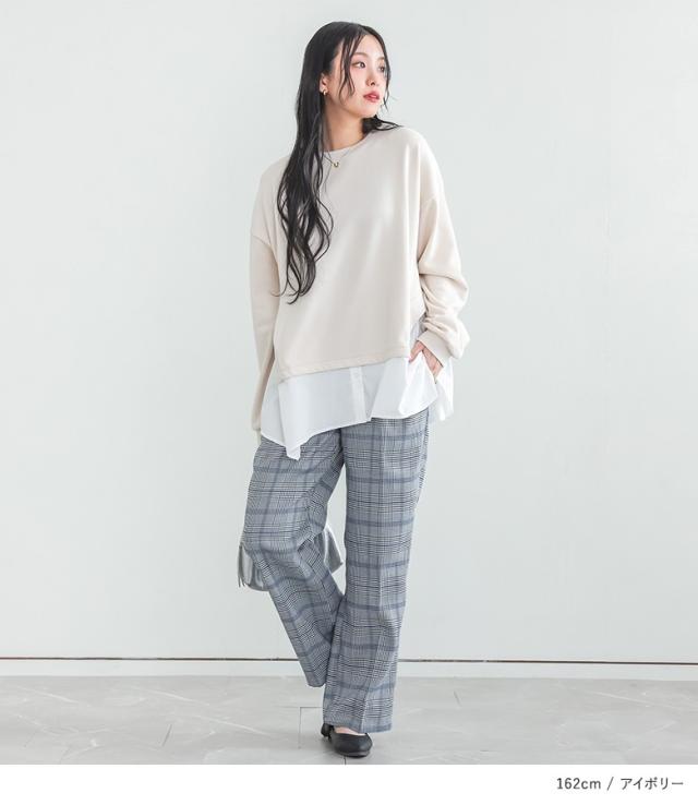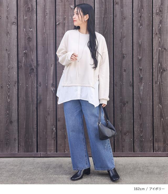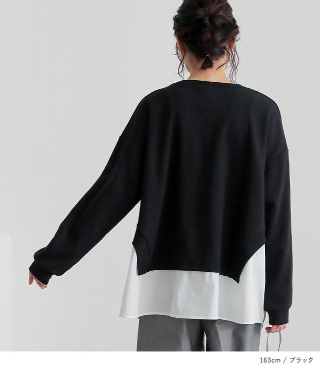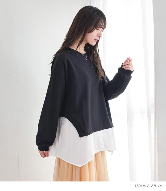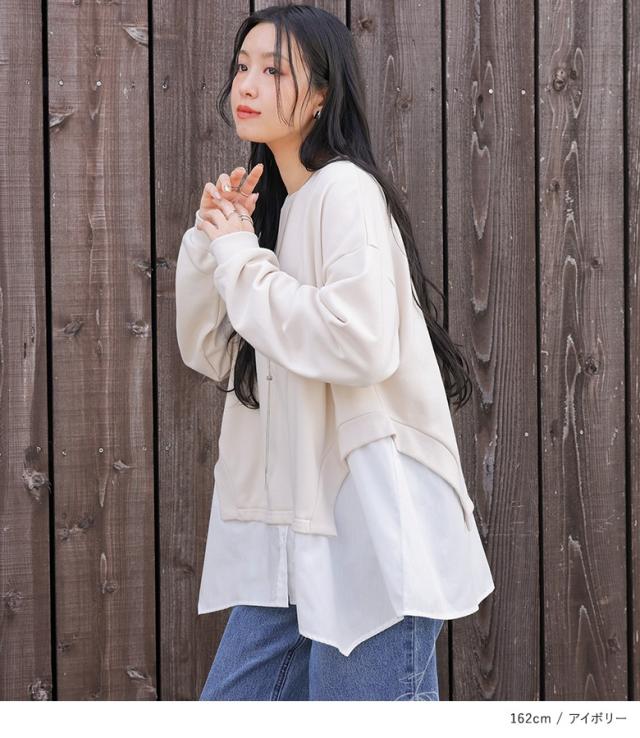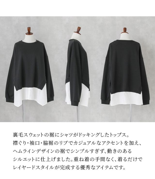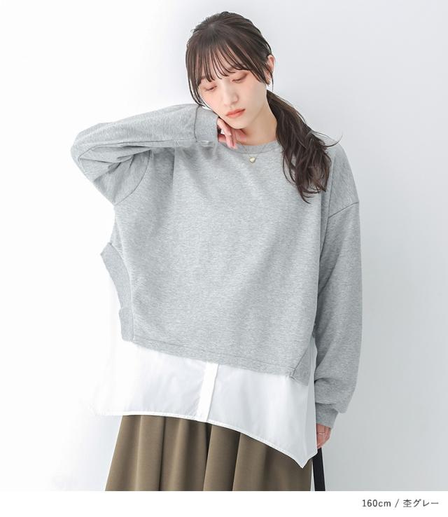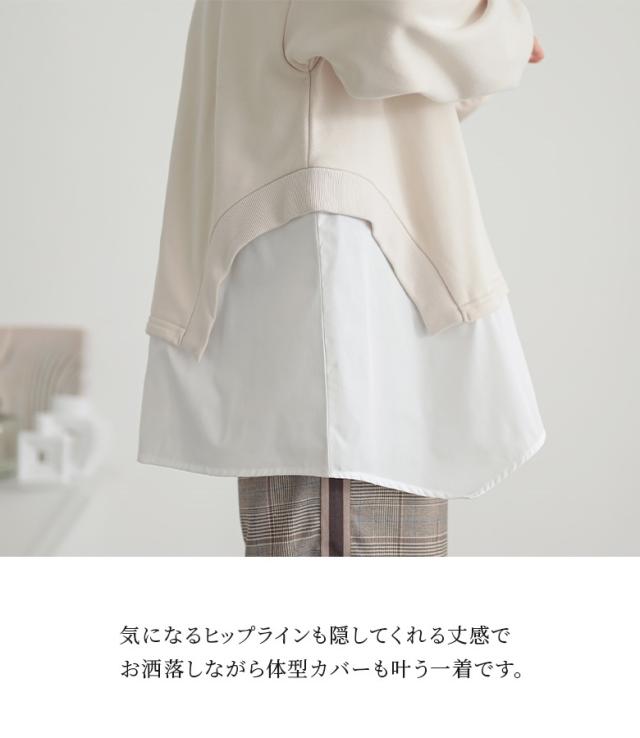 『シャツドッキングスウェット』【メール便不可】【20】[スウェット レディース トップス 長袖 トレーナー ドッキング シャツ レイヤード 重ね着風 ヘムライン オシャレウォーカー]