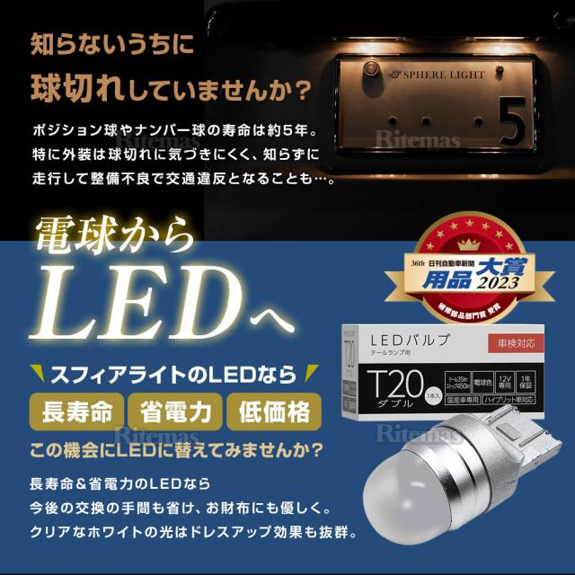 スフィアライト テールランプ 専用 補修用LEDバルブ S25 ダブル 電球色 1本 テール 35lm ストップ 450lm 12V車専用 1年保証 ハイブリッド車対応 車検対応 SPHERELIGHT SLHOS25D