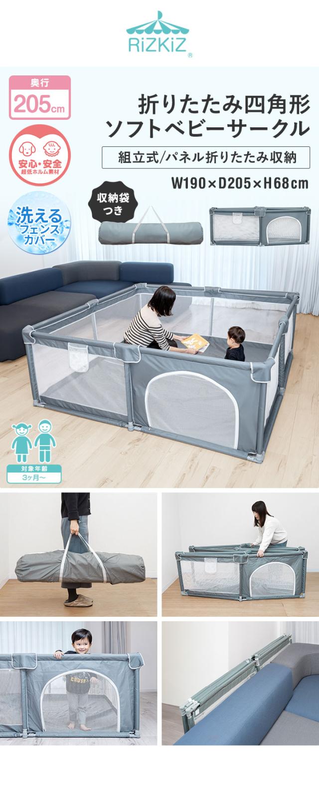 RiZKiZ ベビーサークル 折りたたみ メッシュ 洗える 四角 簡単 置くだけ 幅190cm×205cm 高さ 約68cm ハイタイプ 約2畳 通常サイズ ベビーフェンス 扉付き 赤ちゃん お昼寝 安全 柵 プレイヤード 収納バッグ付 対象年齢 3か月〜 1年保証 送料無料