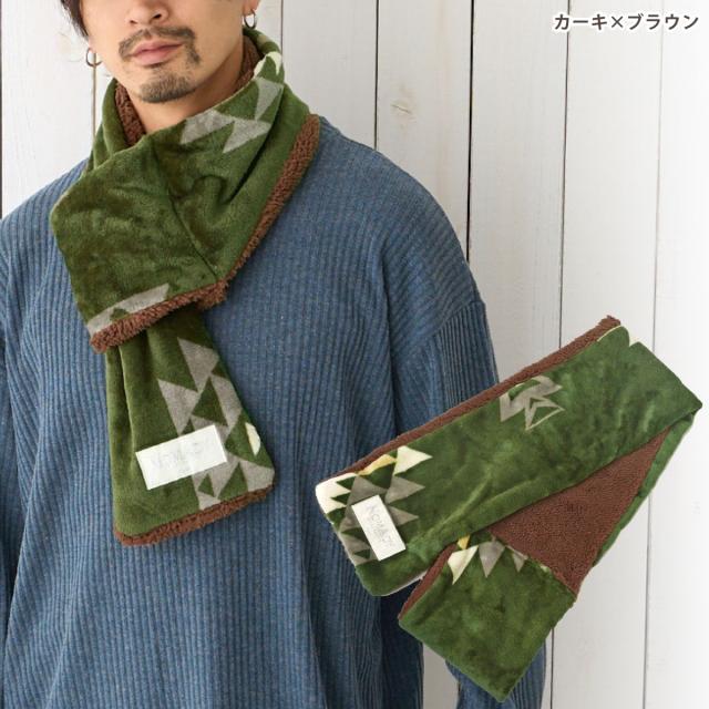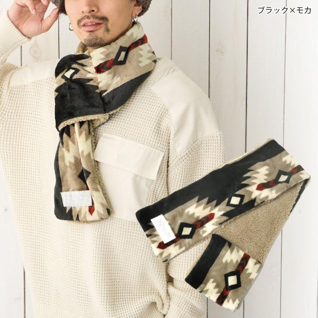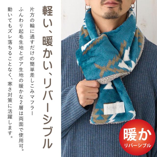 軽量 ふわもこ ストール 差し込み マフラー オルテガ柄 ネックウォーマー 暖か リバーシブル 裏ボア 細幅で巻きやすい 軽い 肩が凝らない st-115 メール便は送料無料 ミニマフラー 防寒 裏起毛 メンズ レディース 秋冬 2WAY お洒落 カラフル 温活 ぽかぽか 男女兼用