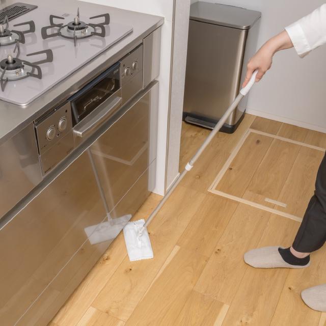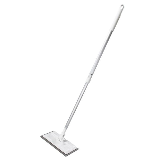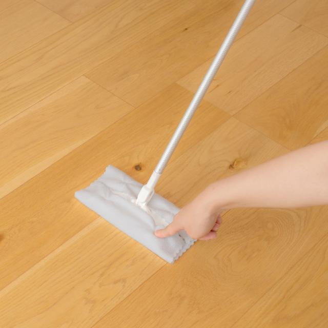 市販の使い捨てマイクロファイバークロス(約20〜23cm)を取り付けて使用できる、フローリングミニワイパーです。四角いソフトなスポンジパッドが床面にフィットし、細かいゴミもしっかり拭き取ります。