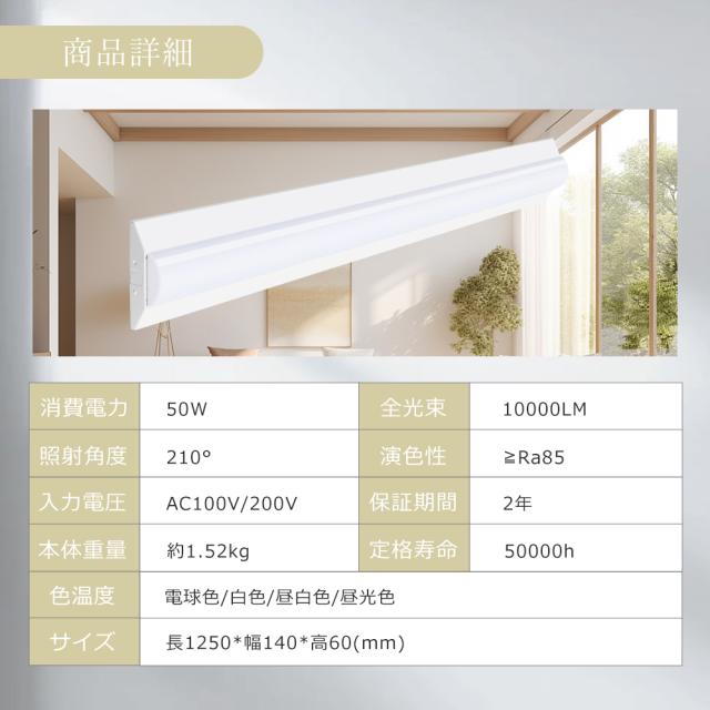 逆富士型LEDベースライト LED蛍光灯 40w型 2灯相当 消費電力50W 10000lm LED蛍光灯 器具一体型 ベースライト 電球色 白色 昼白色 昼光色 LED 蛍光灯 直管 LED ガレージライト LEDキッチンベースライト シーリングライト LED ライトバー ショーケース ホテル PSE認証