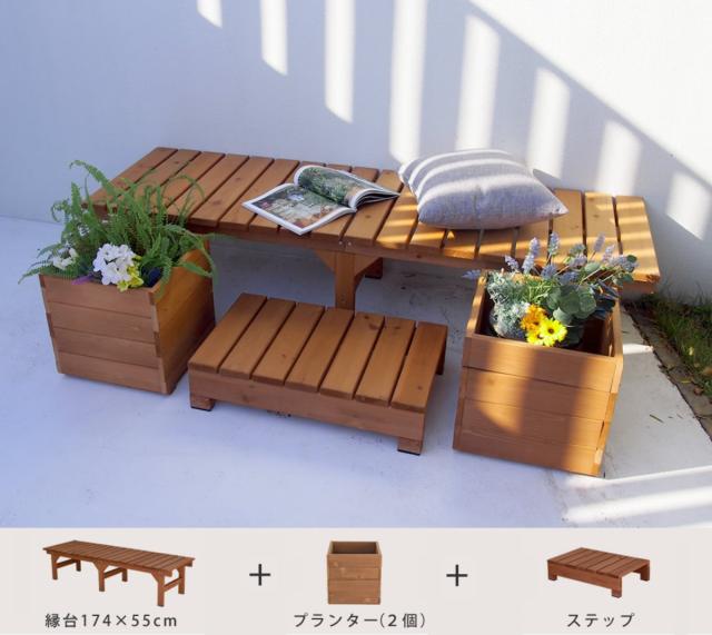 ユニット縁台ベンチ hiyori 幅174 奥行55 ( ガーデンデッキ ベンチ 木製 屋外 ウッドデッキ ウッドベンチ 庭 バルコニー 縁台 天然木 杉 庭先 ぬれ縁 ガーデンベンチ 掃き出し窓 連結 ウッド デッキ おしゃれ )