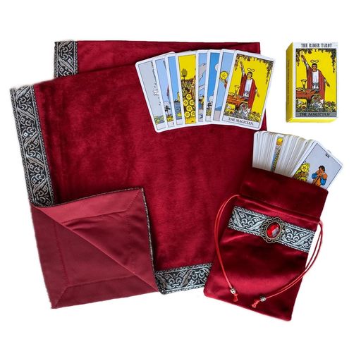 [DLAVE] タロットクロス 赤銀 タロットカード セット 占い オラクルカード タロット うらない スターターキッド 高級 厚手 (赤×銀)