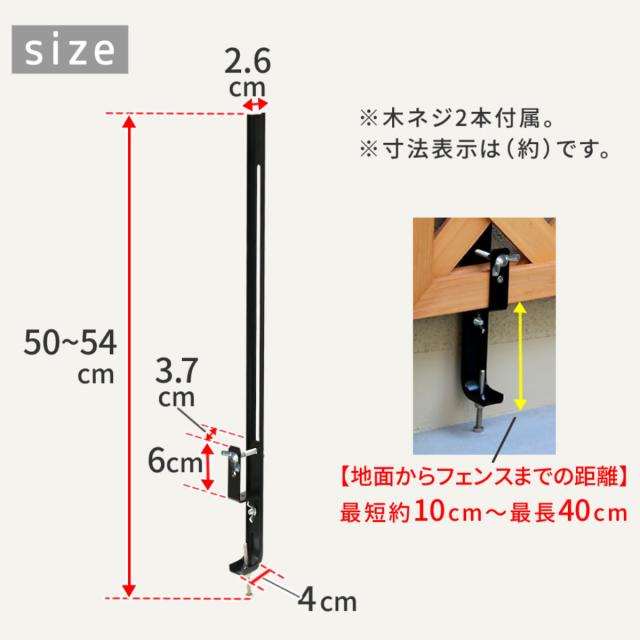 ベランダや塀などのコンクリートフェンスに、ラティスやフェンスを固定したい時に使用する壁面用の固定金具です。