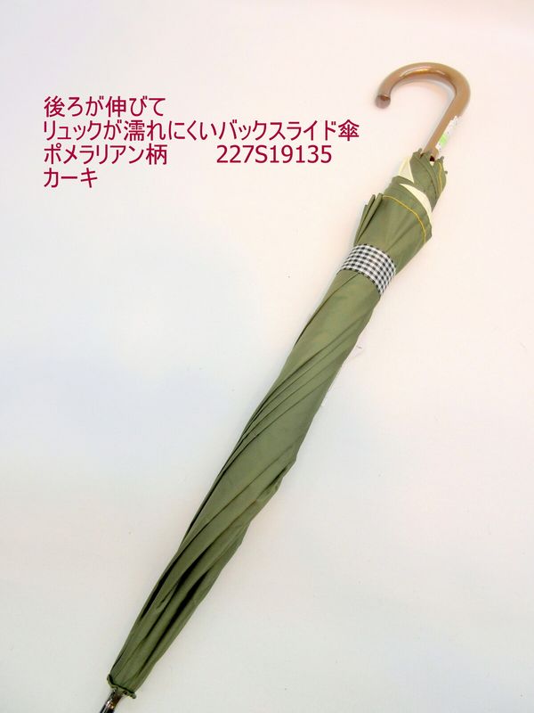 | 後ろが伸びてリュックが濡れにくいバックスライド傘です。強度と柔軟性に優れたグラスファイバー骨を親骨と受け骨に使用、中棒はしっかりした直径10mmサイズ◎ 傘を畳むと通常サイズに戻るので、コンパクトに持ち運びができます。 手元&ネームバンドはチェック柄の生地を使い、アクセントにしました。 大きく伸びる傘をしっかりと支えられる持ちやすい太さの手元♪ スライド部分は可愛いポメラニアン柄。 |