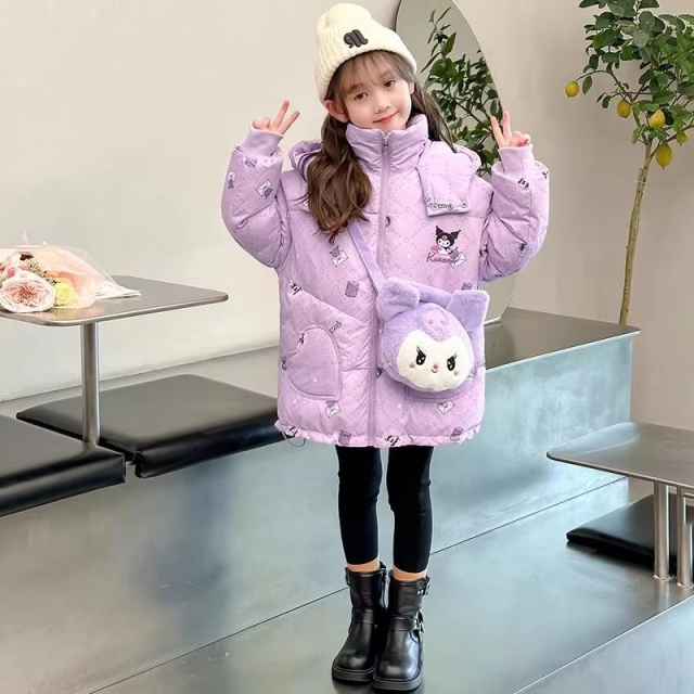 女の子 クロミちゃん サンリオ ロングダウンジャケット フード付き 子供服 ジャケット子ども コート 120-170cm キュート 可愛い