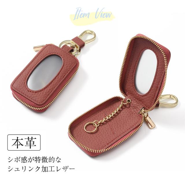 シボ感が特徴的なシュリンク加工された本革使用のキーケース。 柔らかく手馴染みのよいレザーは、しっくりとくる持ち心地、満足感を与えてくれます。 窓付きなのでキーを収納したままの操作も可能です。