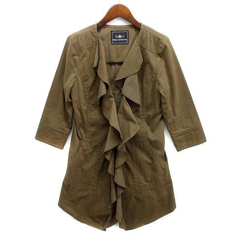 【中古】グレースコンチネンタル GRACE CONTINENTAL ラッフル フリル ノーカラー コート Vネック カーキブラウン 茶 36 レディース