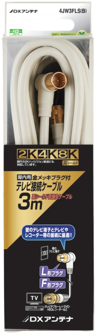 DXアンテナ テレビ接続ケーブル(3m) 【2K・4K・8K対応】 ホワイト 4C 4JW3FLS(B)