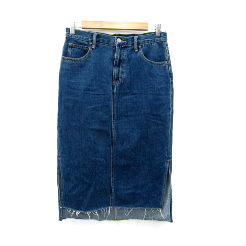 【中古】アズールバイマウジー デニムスカート タイトスカート スリット カットオフ L 青 ブルー /SY5 レディース