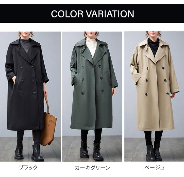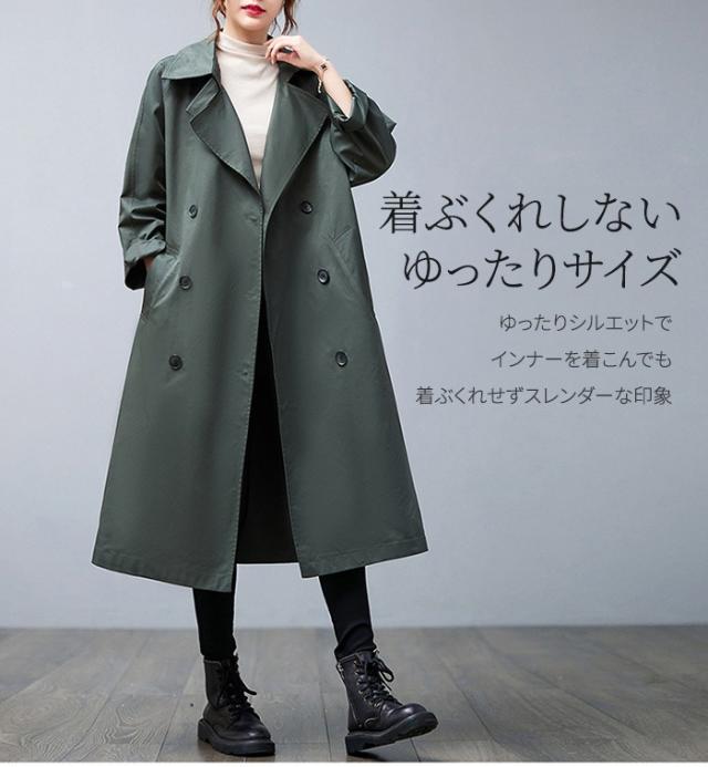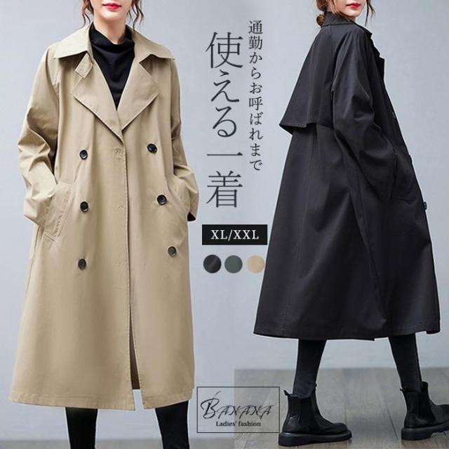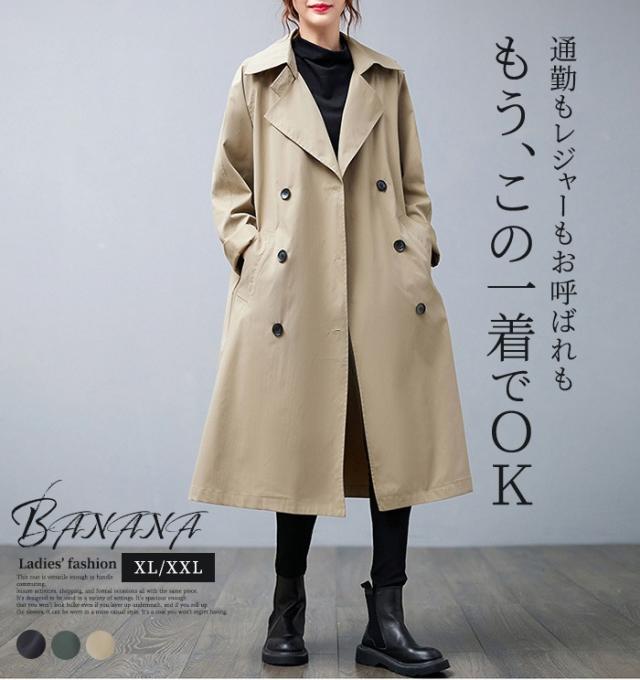 レディース トレンチ コート ロング丈 ロングコート ガウンコート スプリングコート 秋 秋コート 冬 秋用 ロング 大きいサイズ 通勤 黒 ベージュ カーキ オフィス スーツ きれいめ カジュアル XL XXL