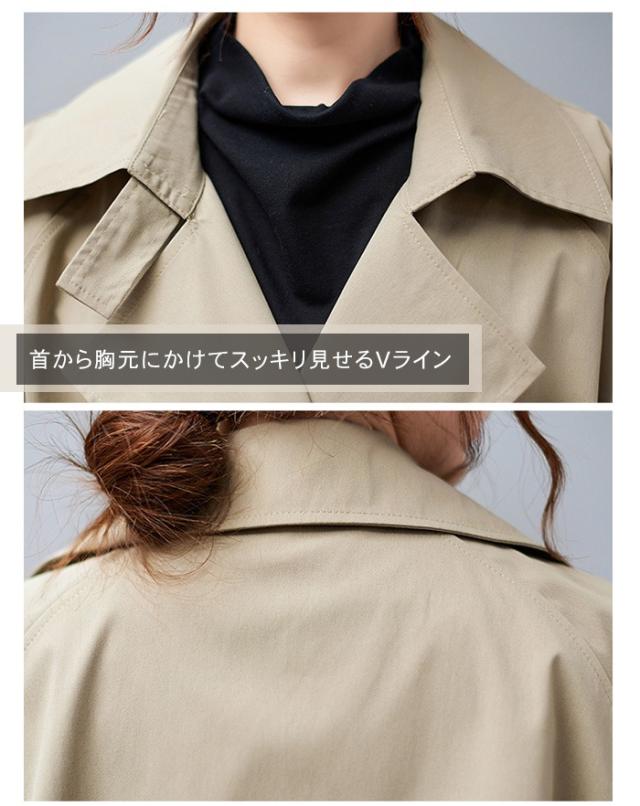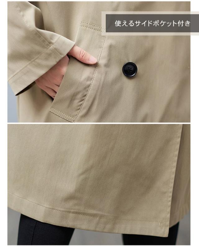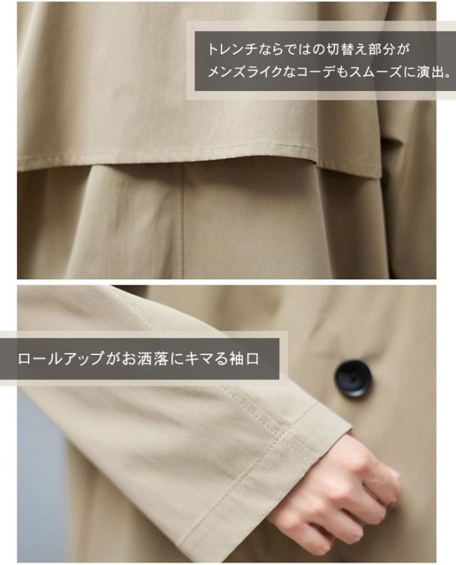 | ゆったり着られるトレンチコートです。 シンプルな定番デザインで、通勤やレジャー、お呼ばれまで幅広いシーンで活用していただけるアイテム。 ウエストベルトがないので、インナーのたくさん着こんでも着ぶくれして見えることなく、可愛い印象に。 袖口を少しロールアップするとカジュアル感と軽快感がプラスされてデイリー使いにピッタリ! |