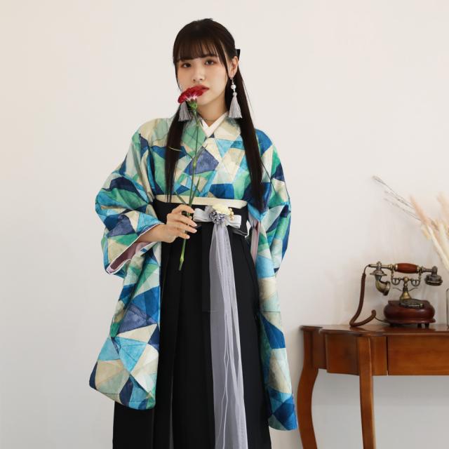 卒業式 袴 レンタル 女 大学 フルセット 袴セット 女性 卒業式袴セット 袴フルセット 「グリーン&水色の幾何学」レンタル シンプル 大人