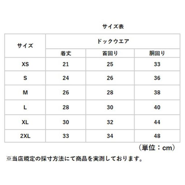 | サイズ | [ペット] ・XSサイズ ・Sサイズ ・Mサイズ ・Lサイズ ・XLサイズ ・2XLサイズ ※サイズについて詳細は、商品画像の中にあるサイズ表をご覧くださいませ。 |