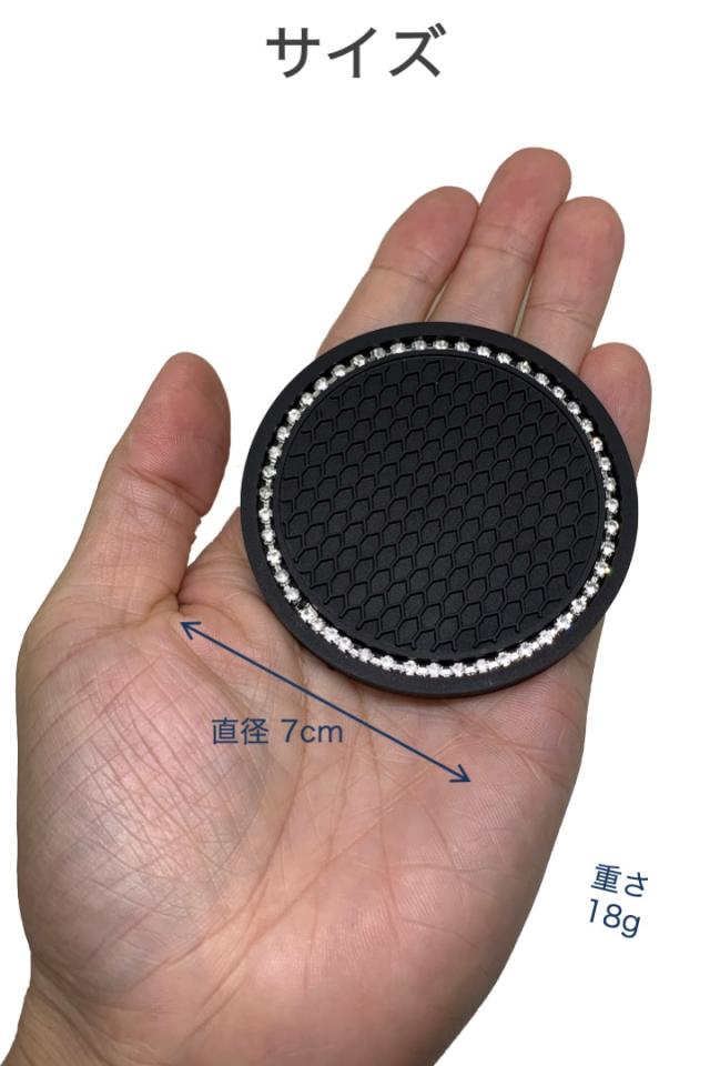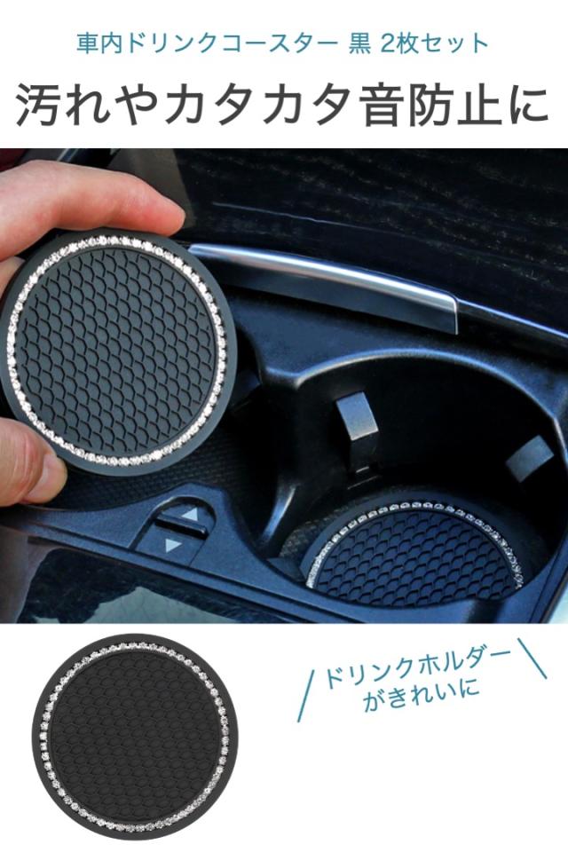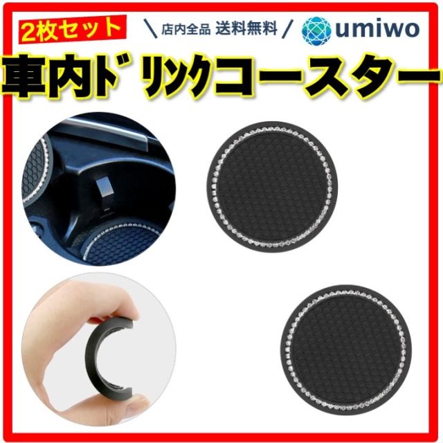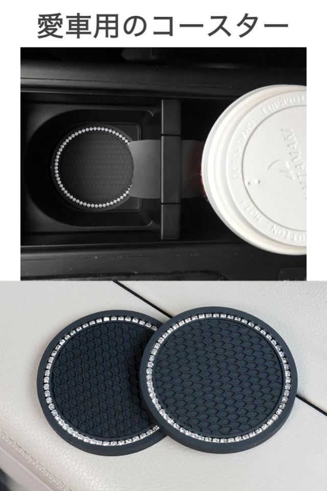 商品名:車内 ドリンク コースター 黒 キラキラ 2枚セット 直径7cm シリコン ノンスリップ カップマット 滑り止め 丸型 ラインストーン デザイン ドリンクホルダー