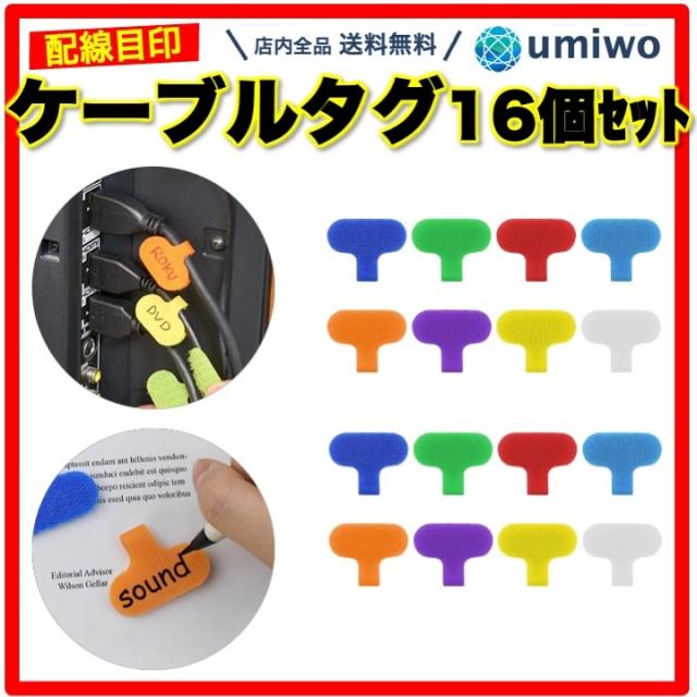 商品名:ケーブルタグ 16個セット ケーブルラベル 目印 配線整理 書き込み 可能 ケーブルタイ 目立つ 見つけやすい マジックテープ ラベル タグ 電源 LAN 充電