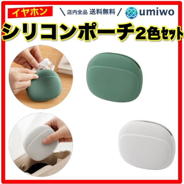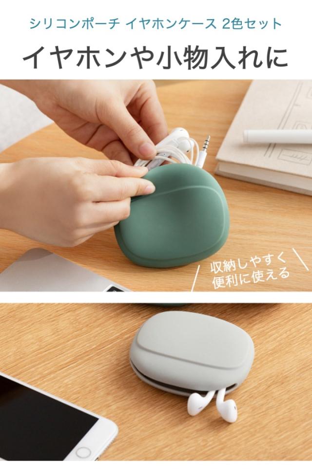 シリコンポーチ イヤホンケース 2色セット グリーン グレー 小物入れ イヤホン ケーブル USBメモリ 鍵 充電器 コード 水洗い可能 小型 軽量 コンパクト シリコン ポーチ イヤホン ケース 収納 整理 バッグ 携帯 シンプル すっきり 有線 子ども