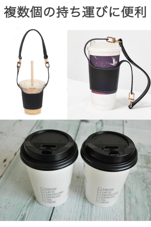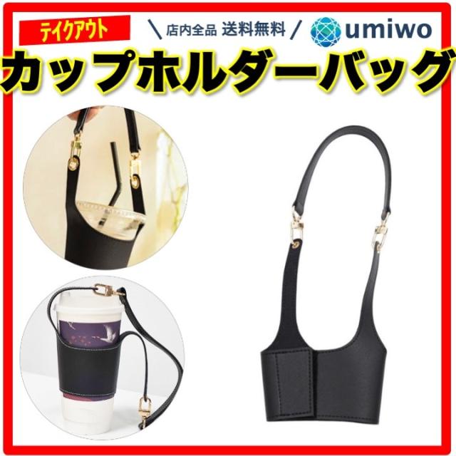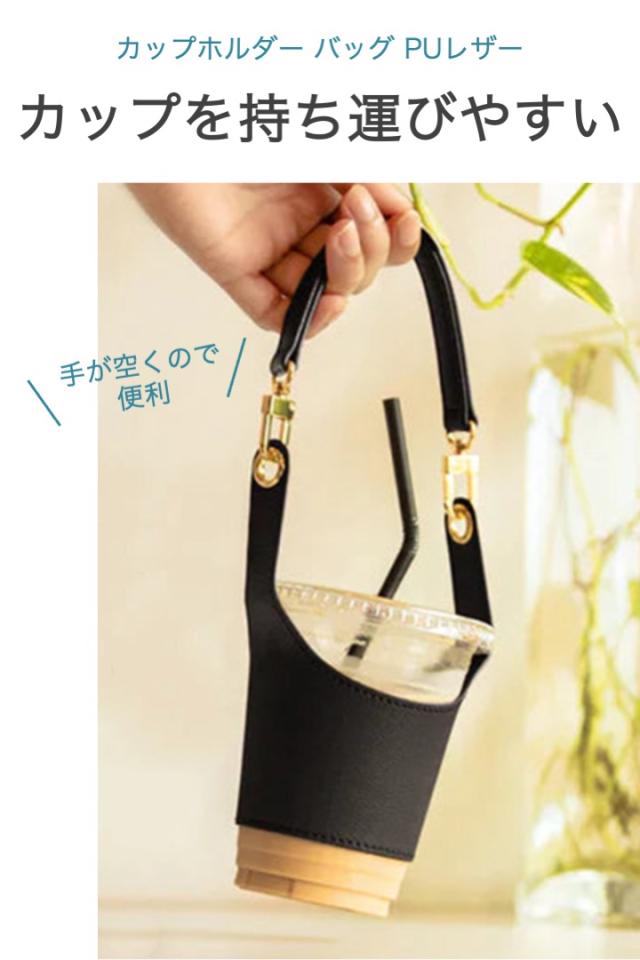 カップホルダー バッグ ブラック PUレザー ドリンクホルダー ボトルホルダー 持ち運び 手提げ 携帯 コーヒーカップ マジックテープ タンブラー ストラップ カップサイズ 調整 テイクアウト 手が空く スマホ コンビニ オフィス デスク 通勤 通学 スターバックス