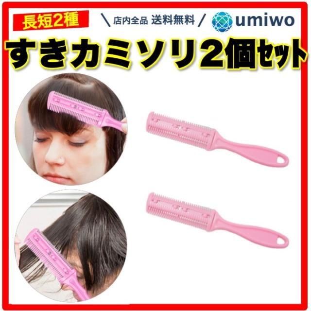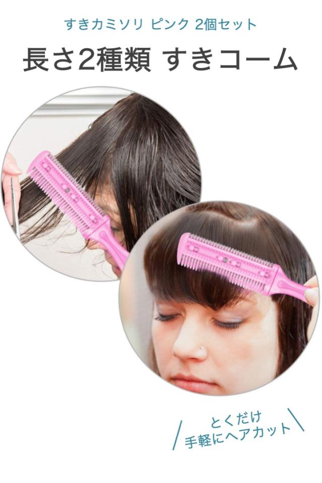 すきカミソリ ピンク 2個セット 剃刀 メンズ レディース 男女兼用 ヘアカットコーム すきばさみ むだ毛 体毛 除毛 ステンレス刃 2パターン 家庭 調整 くし セルフカット 前髪 安全 簡単 散髪 ボディトリマー カミソリ