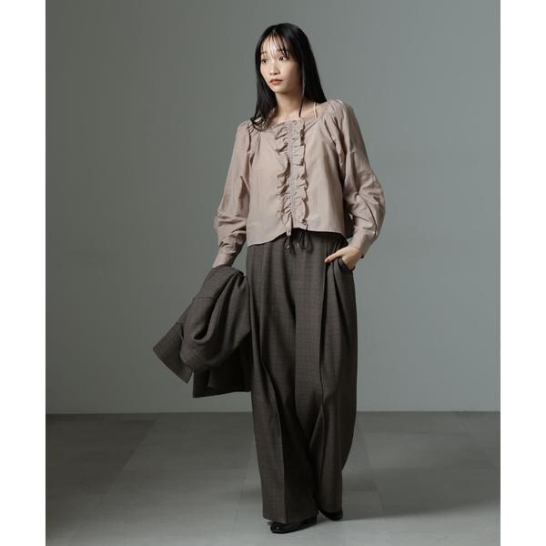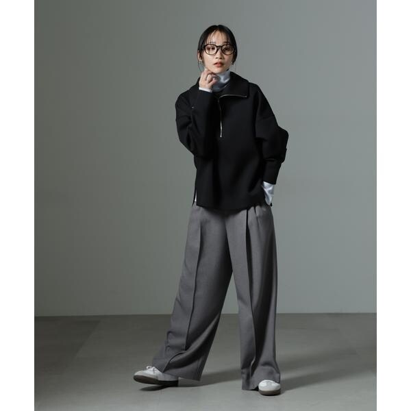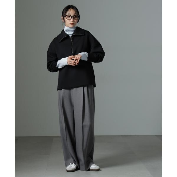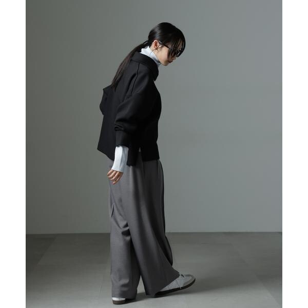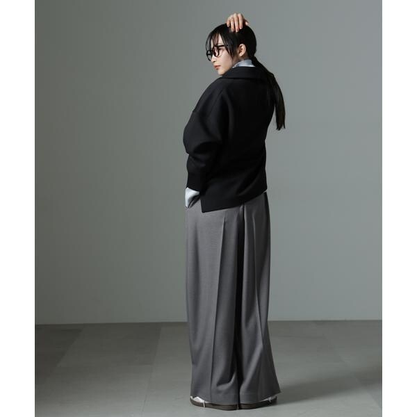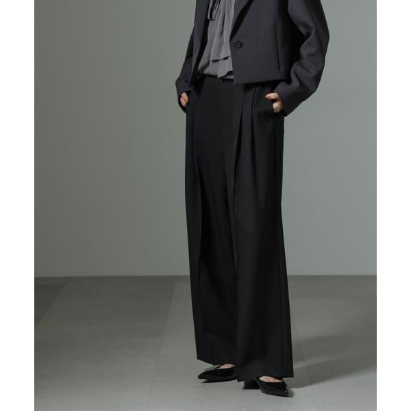 ストレッチサージピンタックイージーワイドパンツ(セットアップ可)