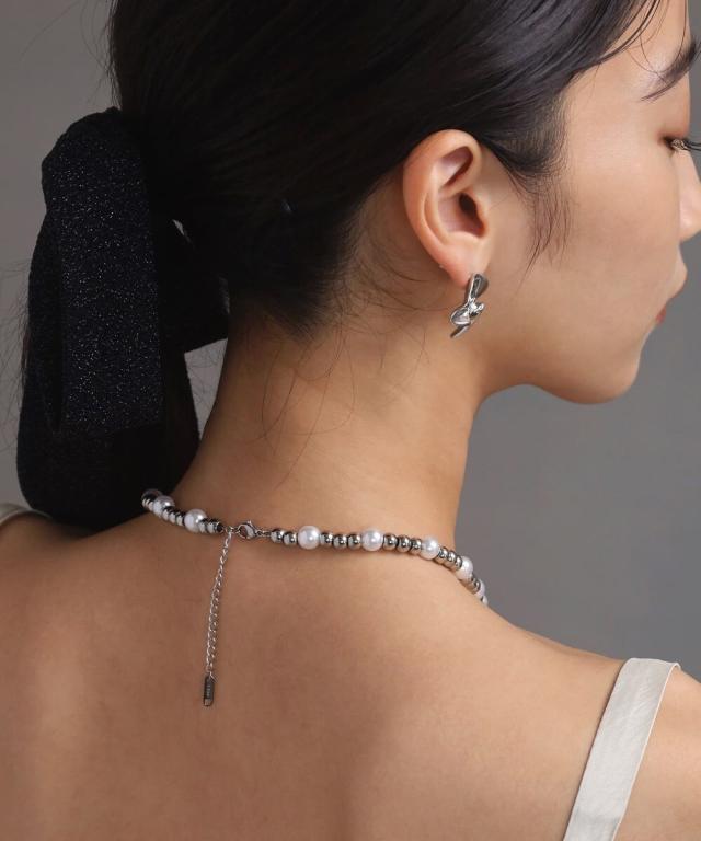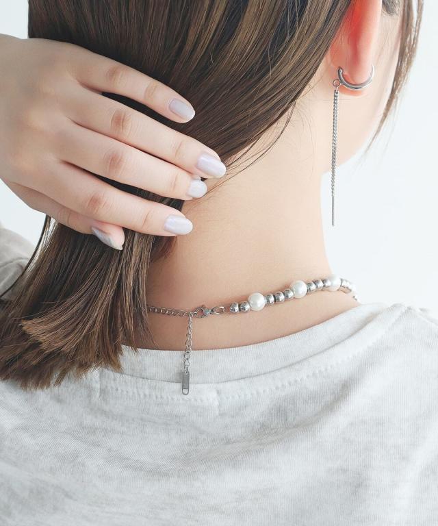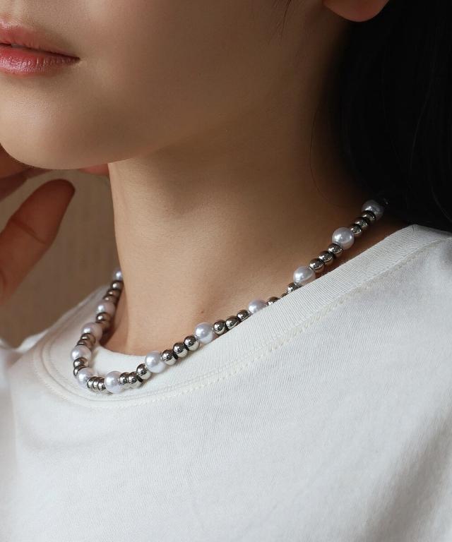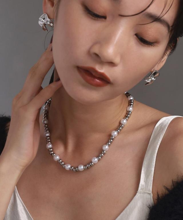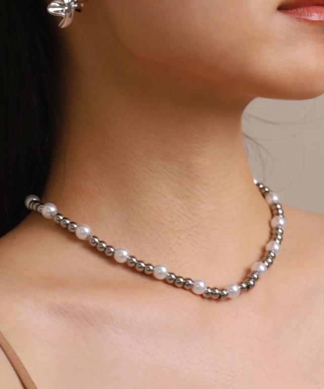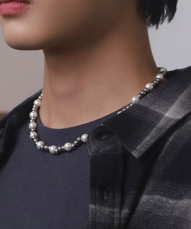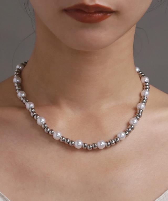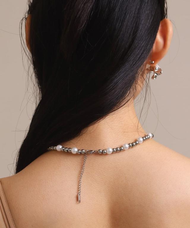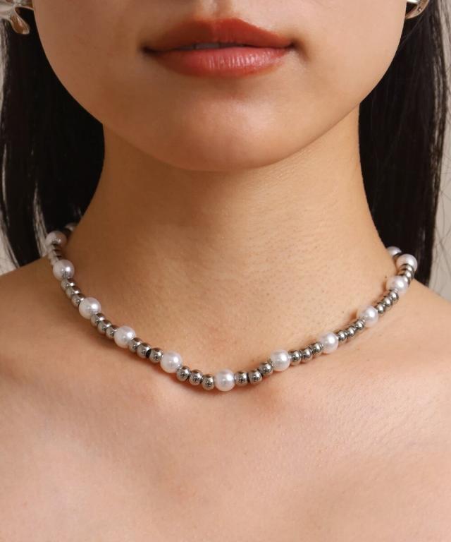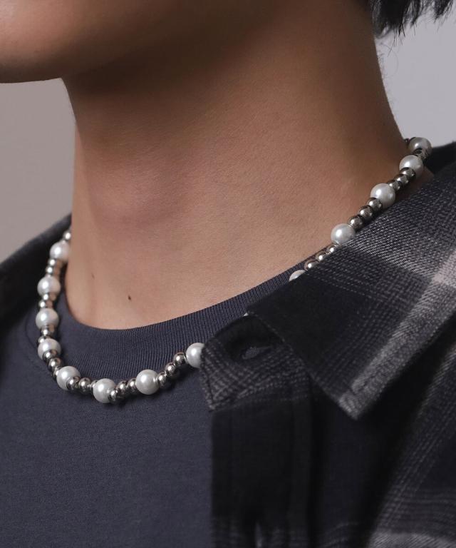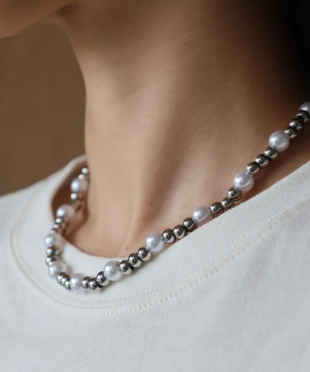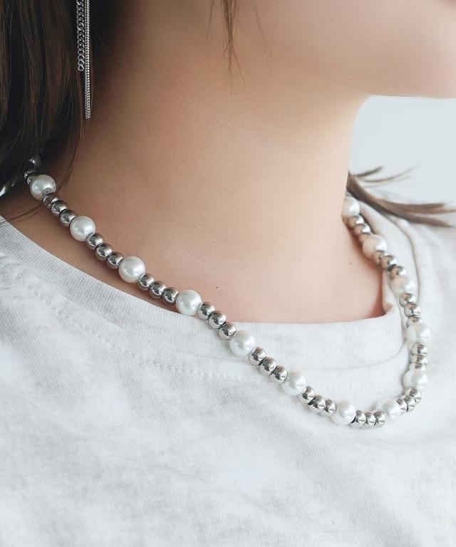 LHME パールミックスボールチェーンネックレス/ラージ/ステンレススティール
