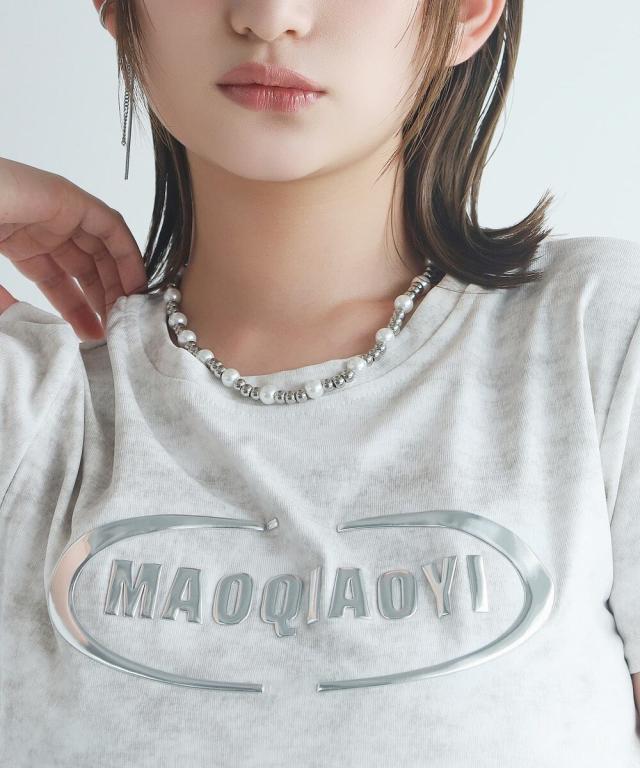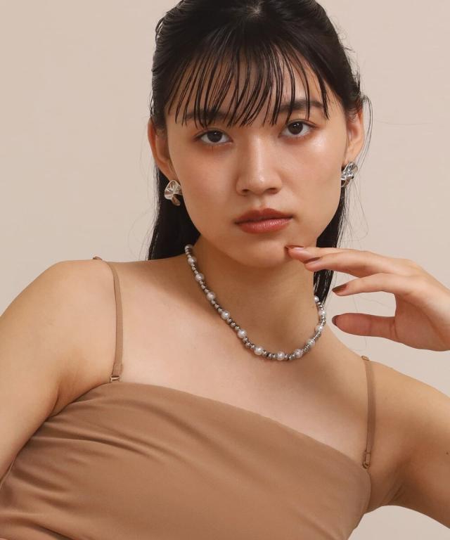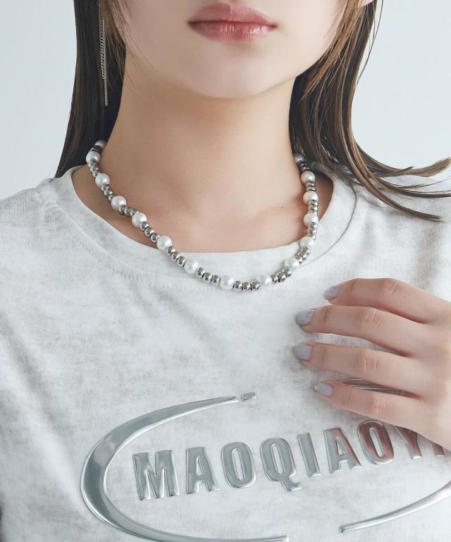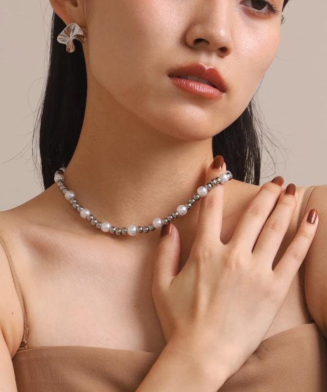 【“MELLOW”パールミックスボールチェーンネックレス/ラージ】