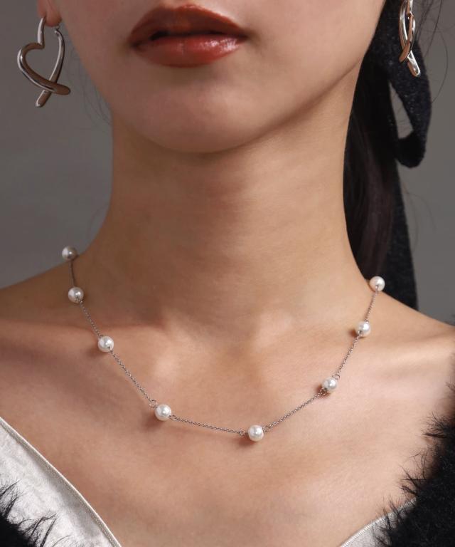 LHME パールステーションネックレス/シルバー/ステンレススティール