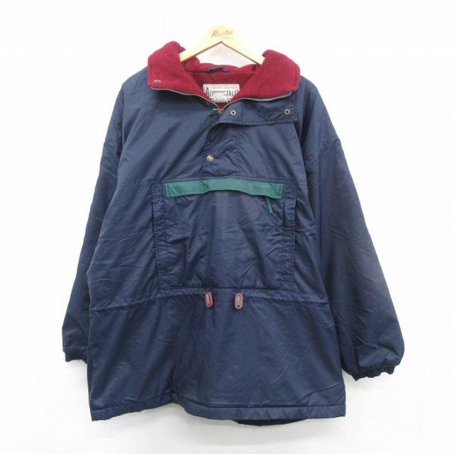 古着 長袖 ナイロン ジャケット メンズ 00年代 00s 襟フリース 大きいサイズ ロング丈 黒他 ブラック 内側キルティング XLサイ 中古 古着