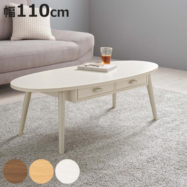 リビングテーブル 幅110cm 引出し2杯 オーバル型 ( 丸 円形 楕円 ローテーブル センターテーブル テーブル 木目調 収納 引き出し コンパクト おしゃれ )