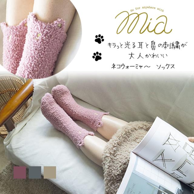 猫の靴下 ネコウオーミャー ウォーマー ウオーマー ウォーミャー 猫 ねこ かわいい 冷え あったかグッズ 送料無料 オフィス 秋冬 冷え対策 冷えとり 冷え性 ピンク グレー ベージュ 部屋用靴下 あったかくつした もこもこ