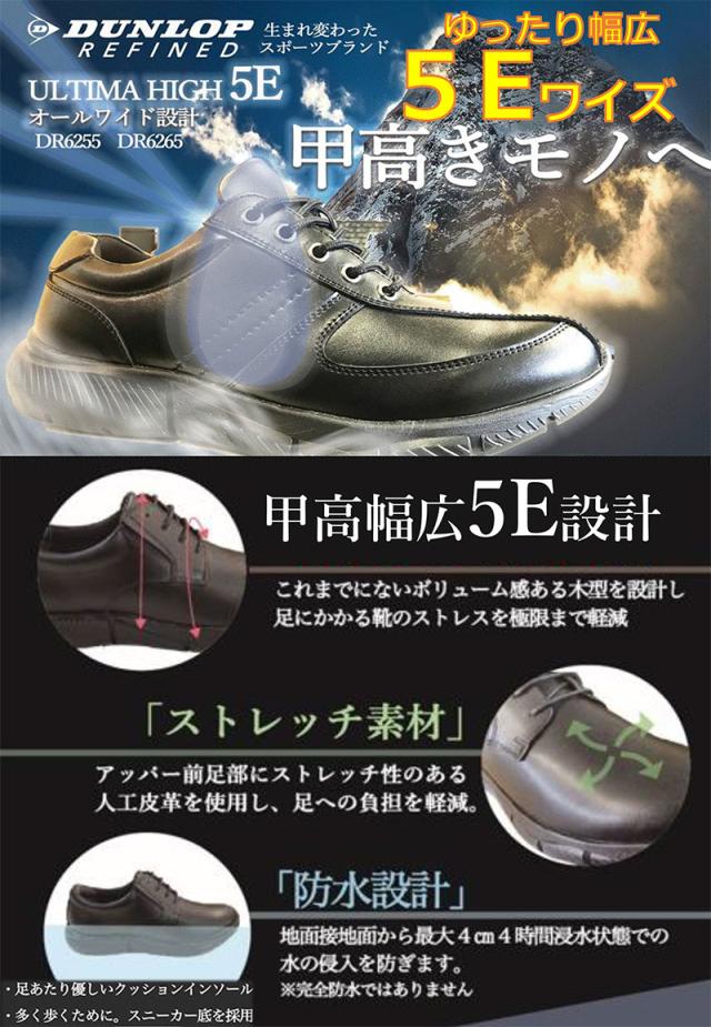 ダンロップ リファインド DR-6300 ブラック 24.5cm〜27cm スリットゴム入り 5E 幅広 ゆったり ワイド 晴雨兼用 雨の日 靴 DR6300 DUNLOP REFIND