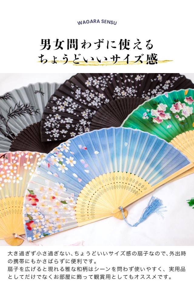 和柄扇子 せんす シルク製 メンズ レディース[meru]浴衣 着物に最適 高級感あるデザイン 竹製骨組み おしゃれ 桜 和風小物 夏祭り 花火大会 ギフトやお土産に
