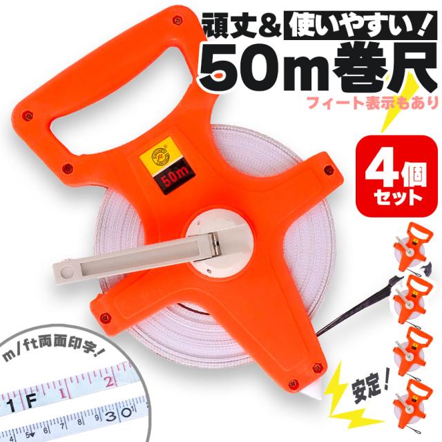 メジャー 巻尺 50m 4個セットオープンリール巻尺 165ft 走り幅跳び巻尺 50メートル 手回し グラスファイバー トラックフィールド 走り幅跳び 大工 建設 オープン巻尺 計測 正確 頑丈 早い テープメジャー 白線 工事 ガーデン 現場 運動場 学校 体育