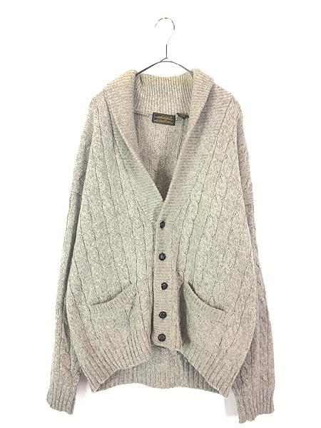 古着 80s Eddie Bauer パチポケ ケーブル編 ローゲージ ウール ニット ショールカラー カーディガン XL