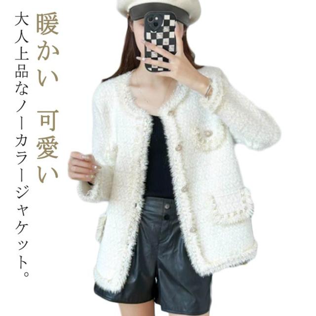 ショート丈 暖かい ノーカラージャケット ノーカラージャケット スーツジャケット 秋 もこもこ オフィス ライトアウター 冬 秋冬 長袖 お洒落 通勤 フォーマル 可愛い カジュアル 卒業式 普段着 春服