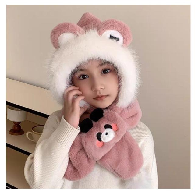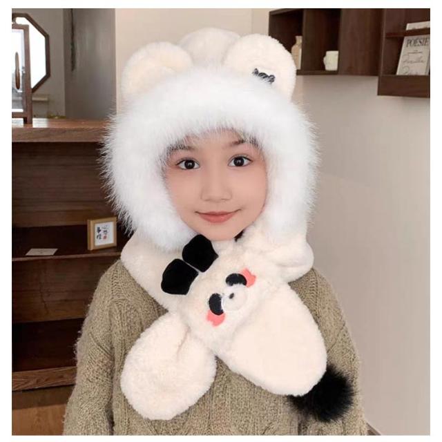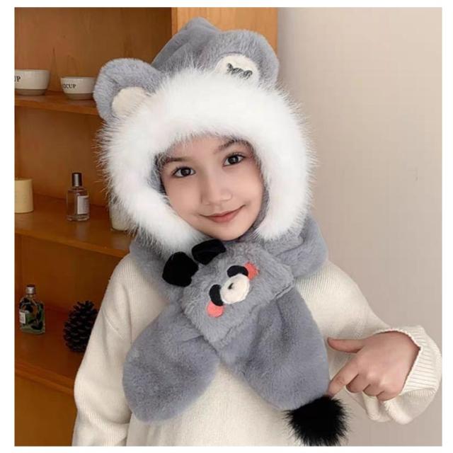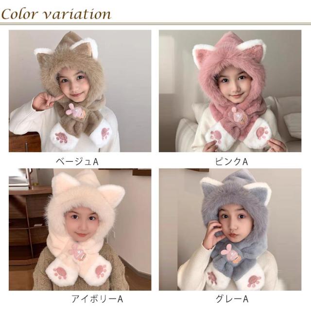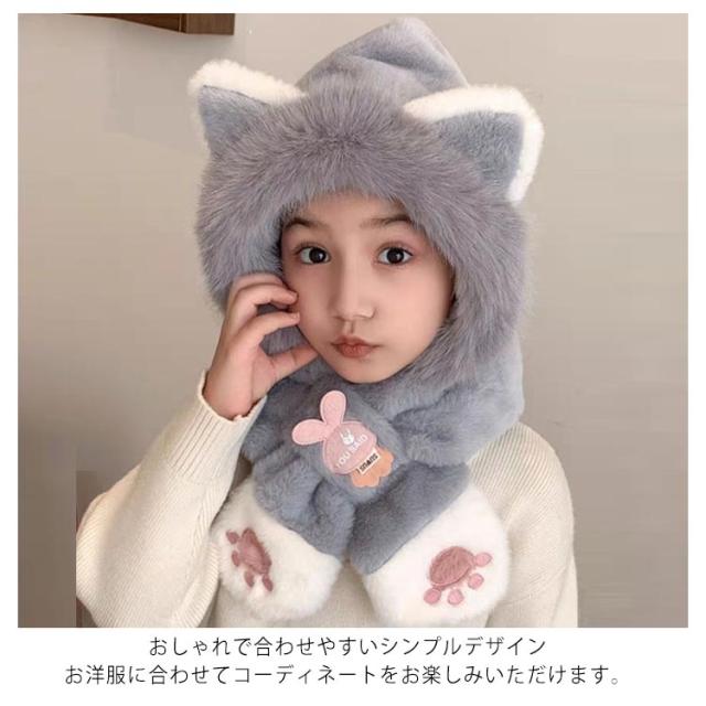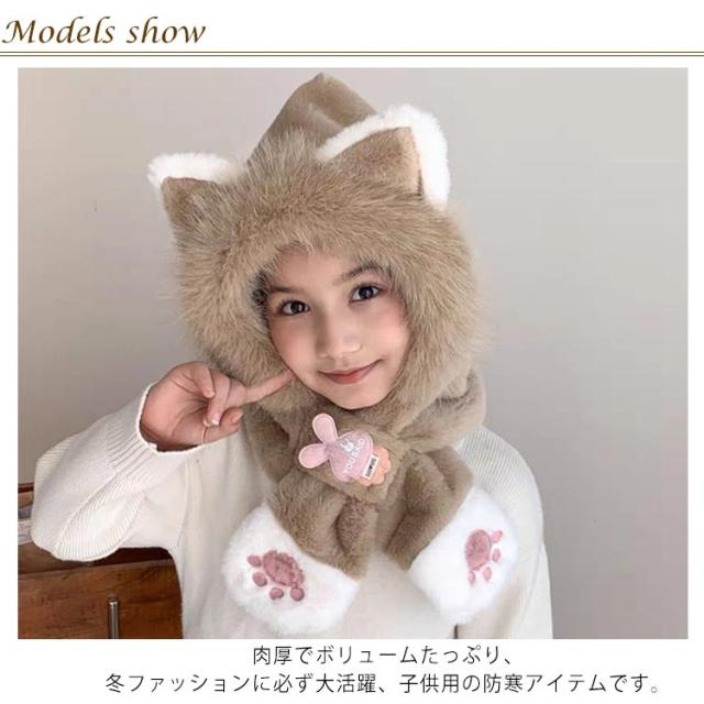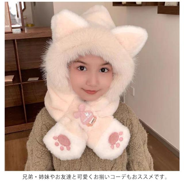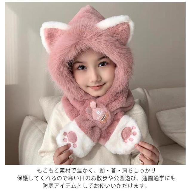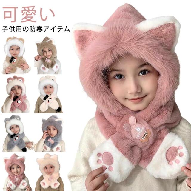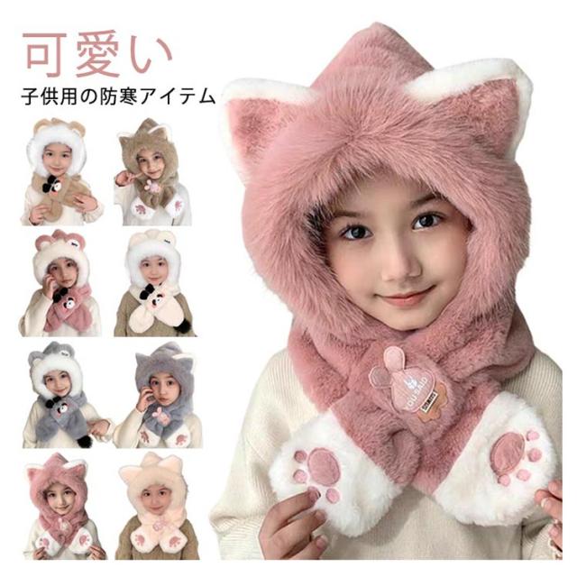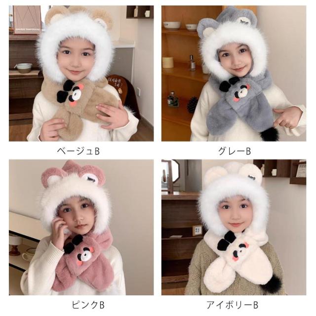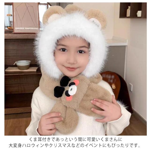 もこもこ 一体 フード くま マフラー 付き 帽子 冬 キッズ フードウォーマー 子供 キャラクター 耳付き 女の子 一体型 ファー くま耳 ベビー 男の子 可愛い 保育園 帽子 おしゃれ クリスマス プレゼント ギフト