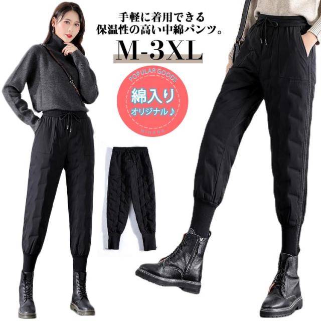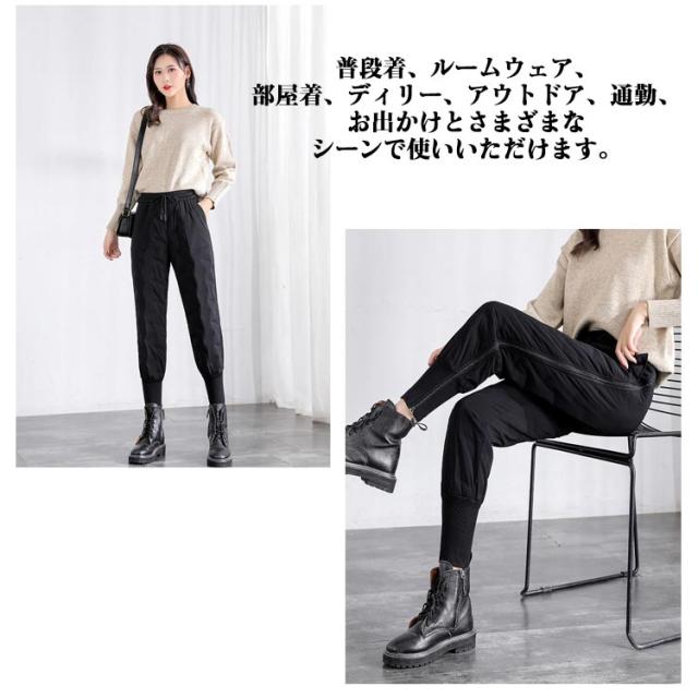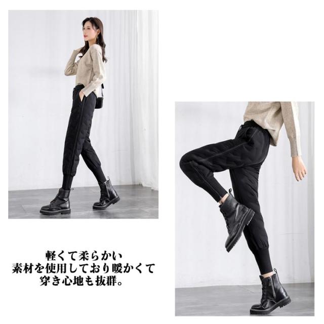 長ズボン 防寒パンツ 中綿ズボン 中綿パンツ サイドファスナー付き ロングパンツ レディース ボトムス 防寒 ダウン風 ズボン ジョガーパンツ 中綿入り カジュアルパンツ 保温 ウエストゴム 軽量 暖かい 秋冬