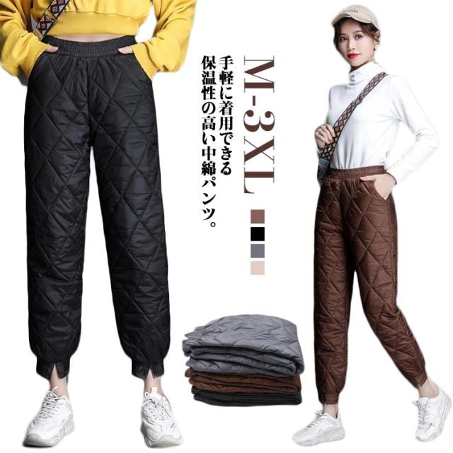 中綿パンツ ズボン 中綿 防寒パンツ 長ズボン ボトムス 中綿パンツ 防寒 ダウン風 ロングパンツ レディース ジョガーパンツ カジュアルパンツ 保温 ウエストゴム 軽量 暖かい 秋冬