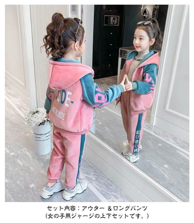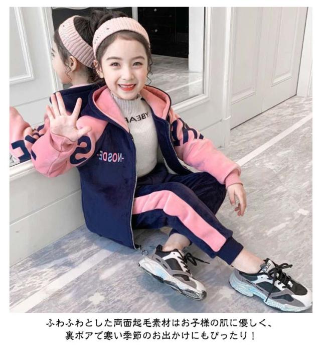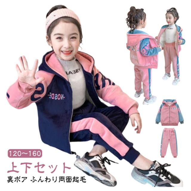 裏ボア 両面起毛 子供 セットアップ ダンス衣装 ジャージ 130 女の子 両面起毛 120 ジュニア あったか 150 140 キッズ服 160cm 秋冬 春 アウター 長袖 ジャンパー ガールズ トレーナー スポーツウェア 韓国ファッション 暖かい スウェットパンツ