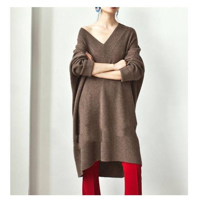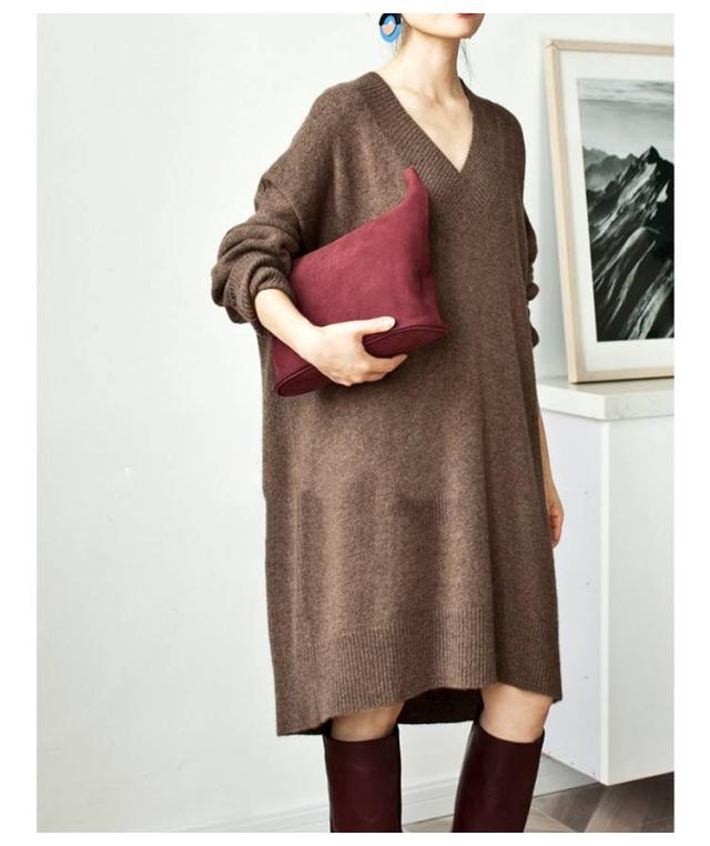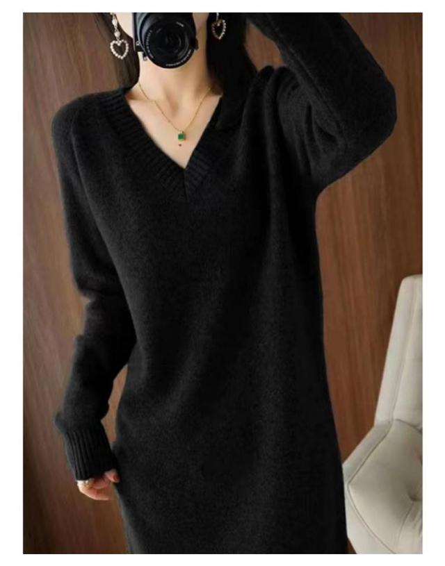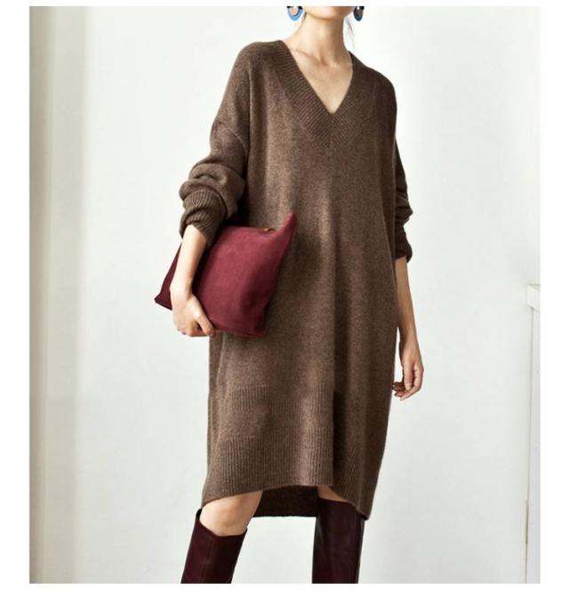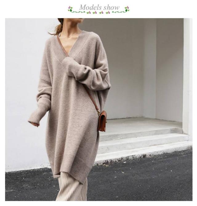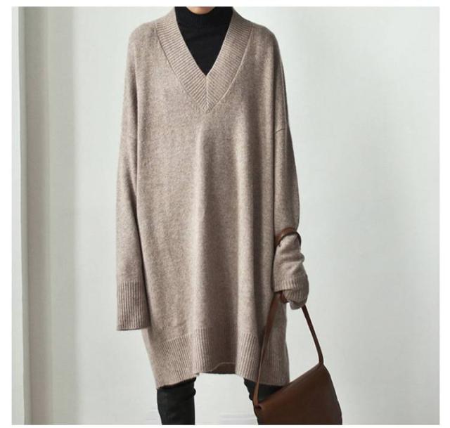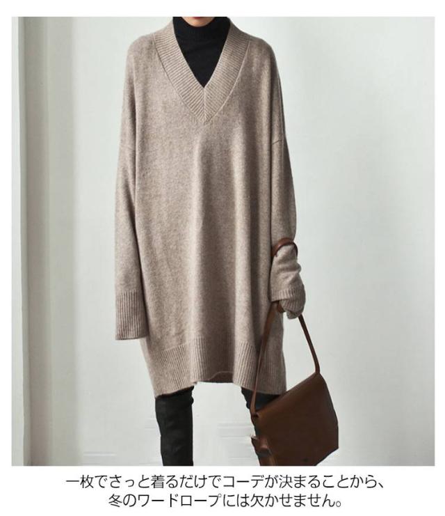 Vネック ニットワンピース チュニック Vネック ロングセーター 体型カバー レディース トップス ニットセーター ドロップショルダー ゆったり 大きいサイズ 長袖 オシャレ 無地 オフィス 着痩せ