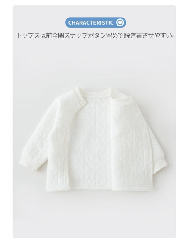 | 保温性に優れた上下セットベビーパジャマ! トップスは前全開スナップボタン留めで脱ぎ着させやすい。 柔らかく優しい肌触りのコットン生地だから、着心地抜群! 厚みがあるので、お子様をあったかく包まれて、ぐっすり眠ることができます。 ぽかぽかあったかく包まれて、赤ちゃんもぐっすり眠ることができます。 袖口と裾口はリブ仕様で暖かさキープ、冷気が侵入しにくい。 ハイウエストデザイン、動いてもお腹が出にくく安心です。 プチプライスだから、洗い替え用も買いやすい♪ | |