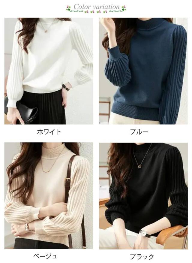 秋冬 リブニット レディース ニットセーター タートルネック リブニット セーター トップス カットソー 無地 おしゃれ エレガント 着回し 保温 柔らか ストレッチ 二の腕カバー おしゃれ 可愛いカジュアル