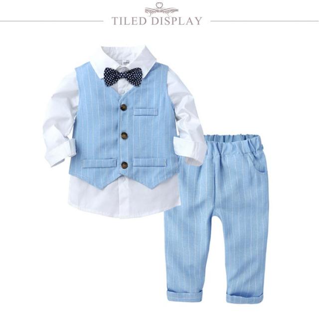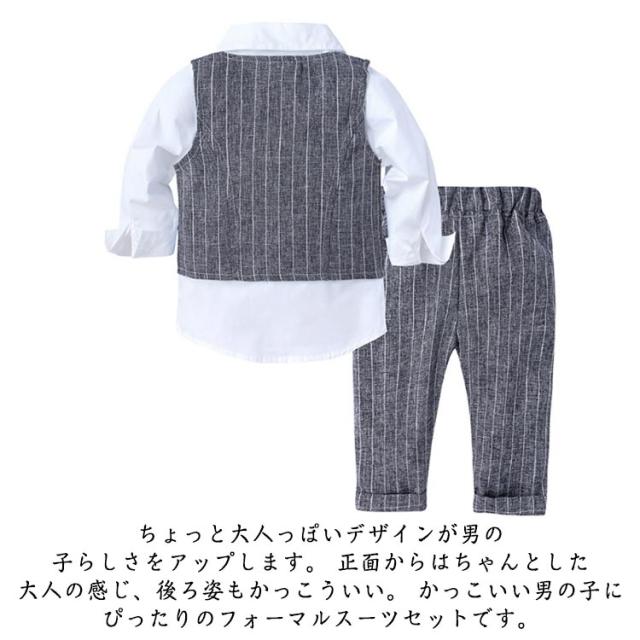 | セット内容:ベスト シャツ(蝶ネクタイ付き) ズボン。 蝶ネクタイがクールで、お食い初めや結婚式などのイベントにピッタリのフォーマルカバーオール! ウェストはゴム仕様なので履きやすい。 ちょっと大人っぽいデザインが男の子らしさをアップします。 正面からはちゃんとした大人の感じ、後ろ姿もかっこういい。 かっこいい男の子にぴったりのフォーマルスーツセットです。 結婚式や発表会、七五三などではフルセットでキメて、お出かけやパーティー、お食事会などにも最適! 家族写真、お食い初めなどの記念撮影にもインスタ映えもバッチリ。出産祝い、誕生日、お孫さんのプレゼントなどにも喜ばれます。 | |