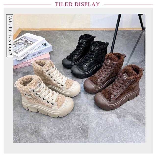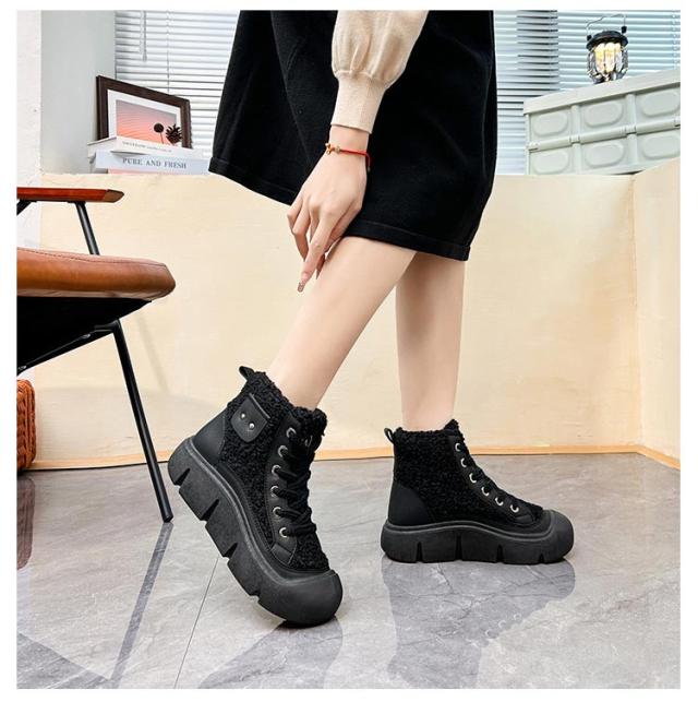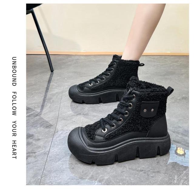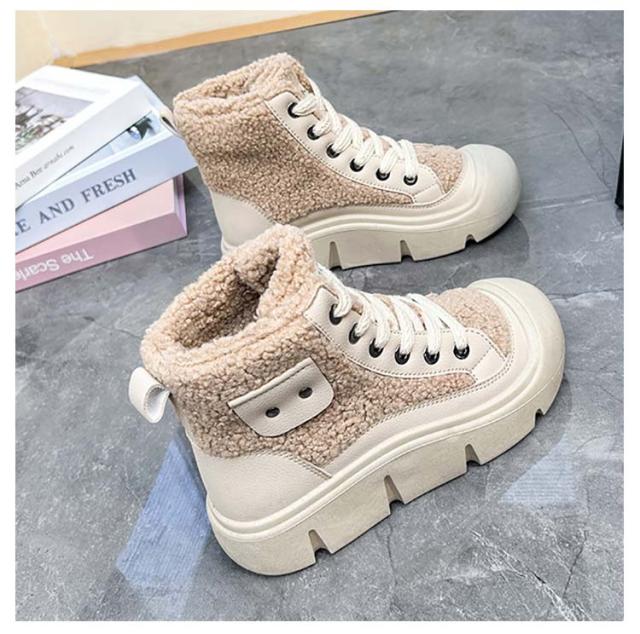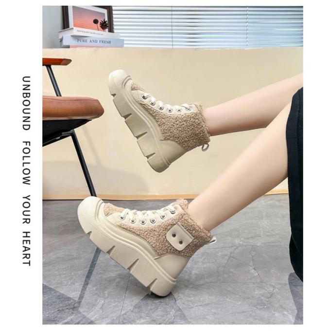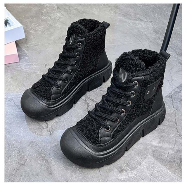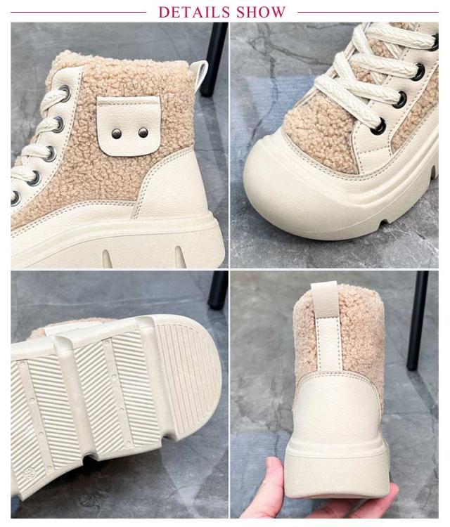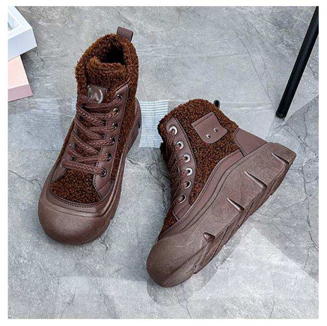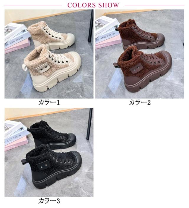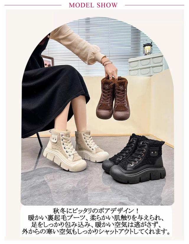 ボアブーツ レディース ショートブーツ ハイカット スニーカー レースアップ 裏起毛 厚底スニーカー 歩きやすい 疲れない ハイカットスニーカー カジュアル かわいい 22.5-25cm