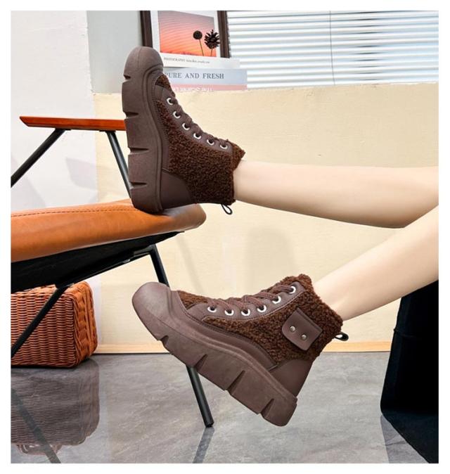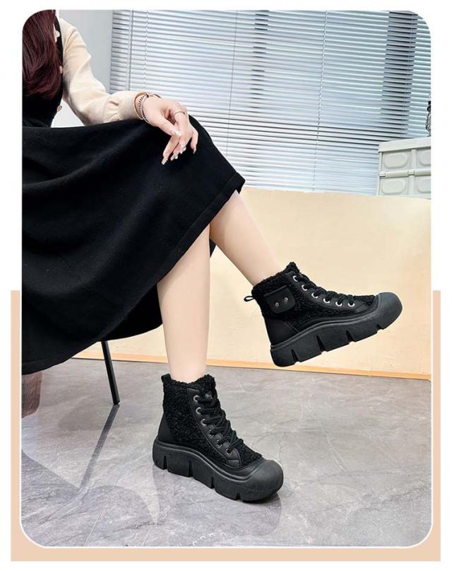 | 秋冬にピッタリのボアデザイン!暖かい裏起毛ブーツ、柔らかい肌触りを与えられ、足をしっかり包み込み、暖かい空気は逃がさず、外からの寒い空気もしっかりシャットアウトしてくれます。 4cm厚底デザイン、さり気なく身長アップ、美脚効果を実現、女性綺麗な姿を示します。 | |