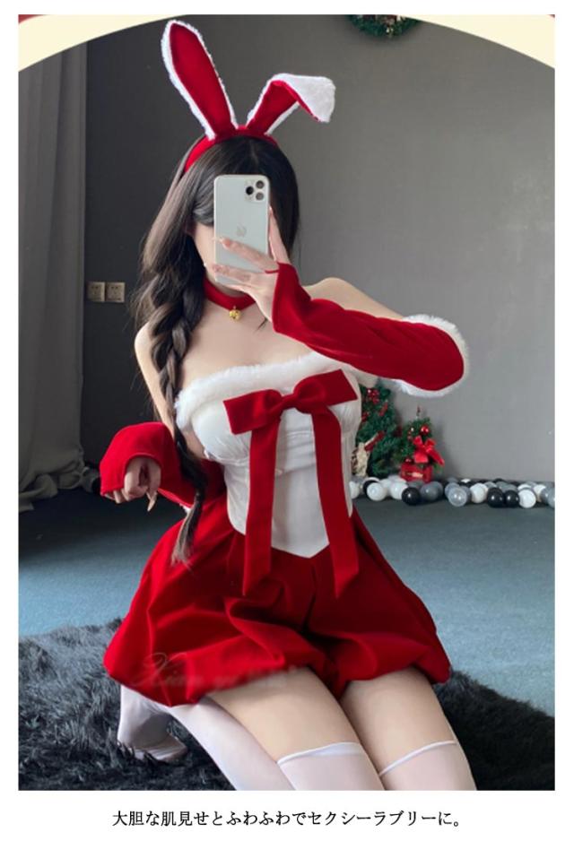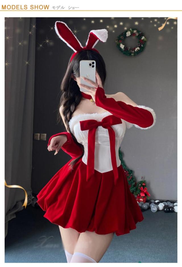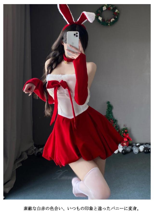コスプレ衣装 キャバドレス うさ耳 サンタクロース うさぎ ワンピース バニーガール バニー うさぎ コスプレ セクシー クリスマス衣装 白赤 ハロウィン サンタコス 可愛い コスチューム 仮装 クリスマス ミニワンピース ドレス