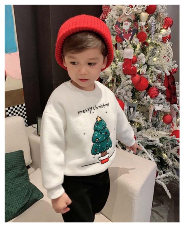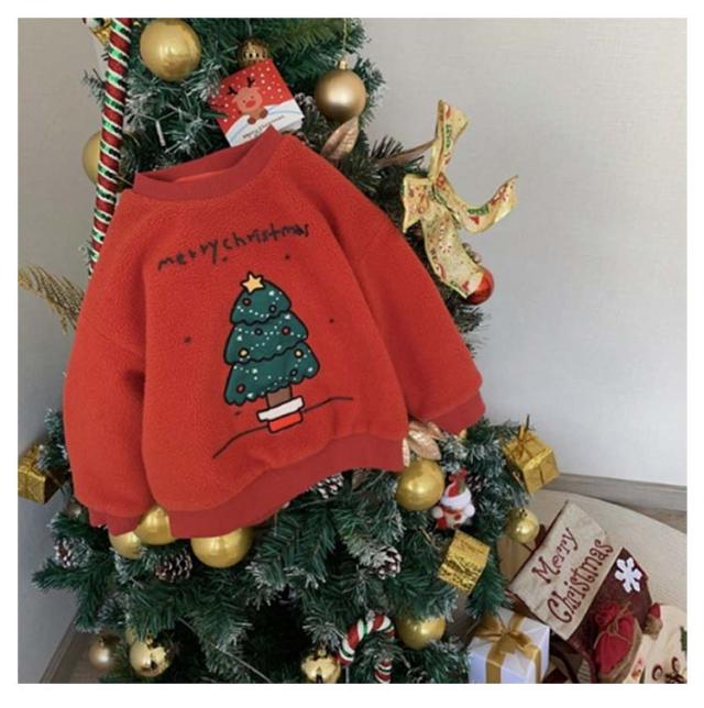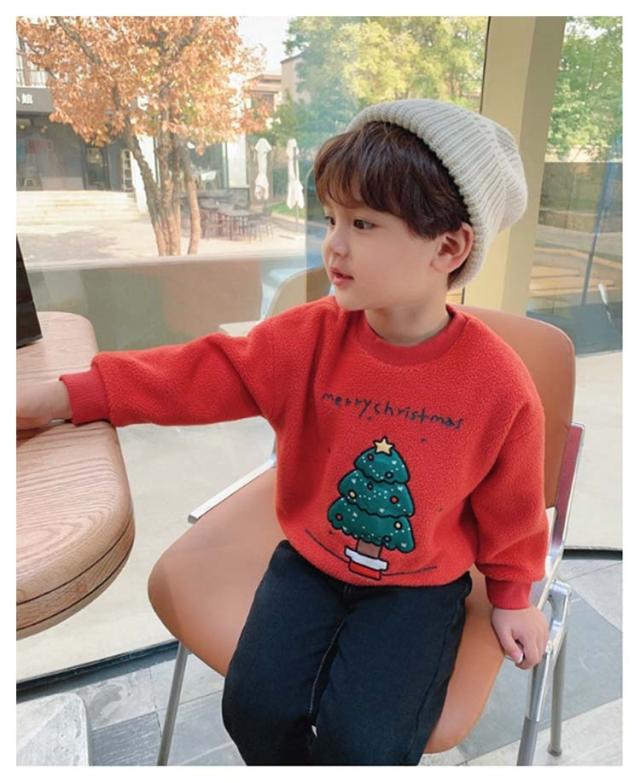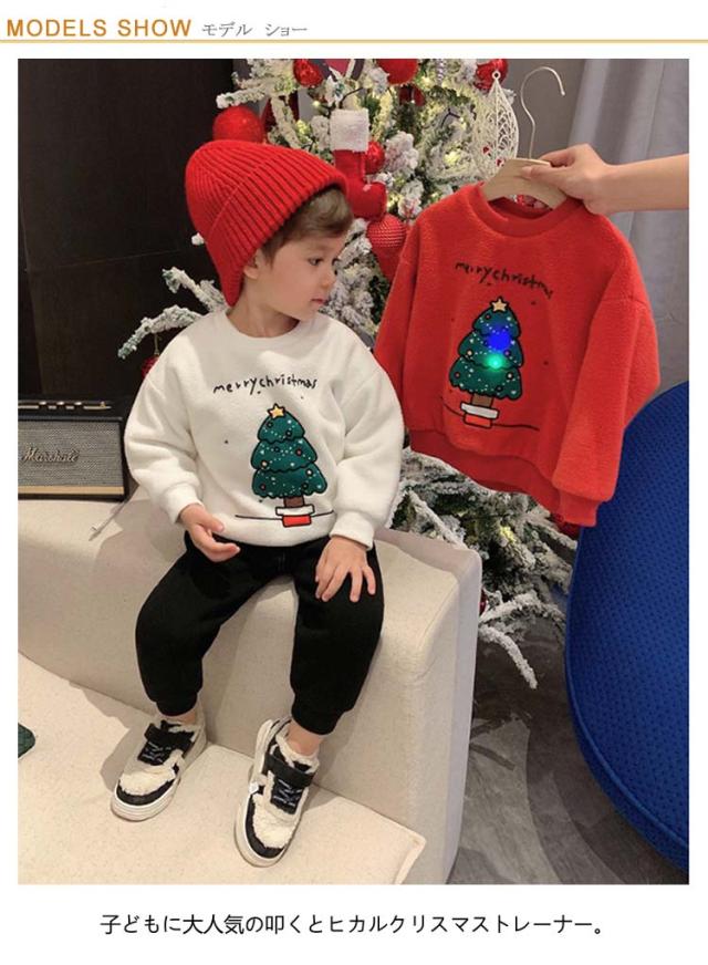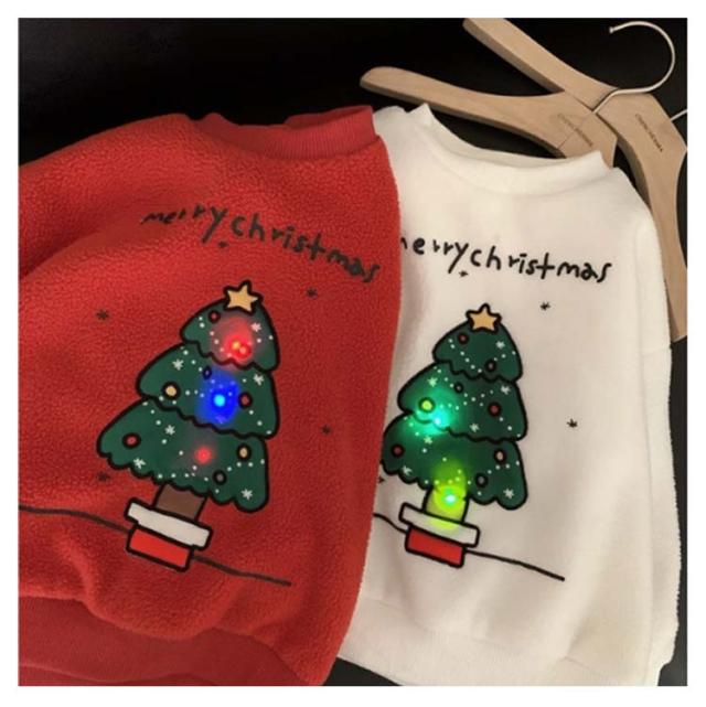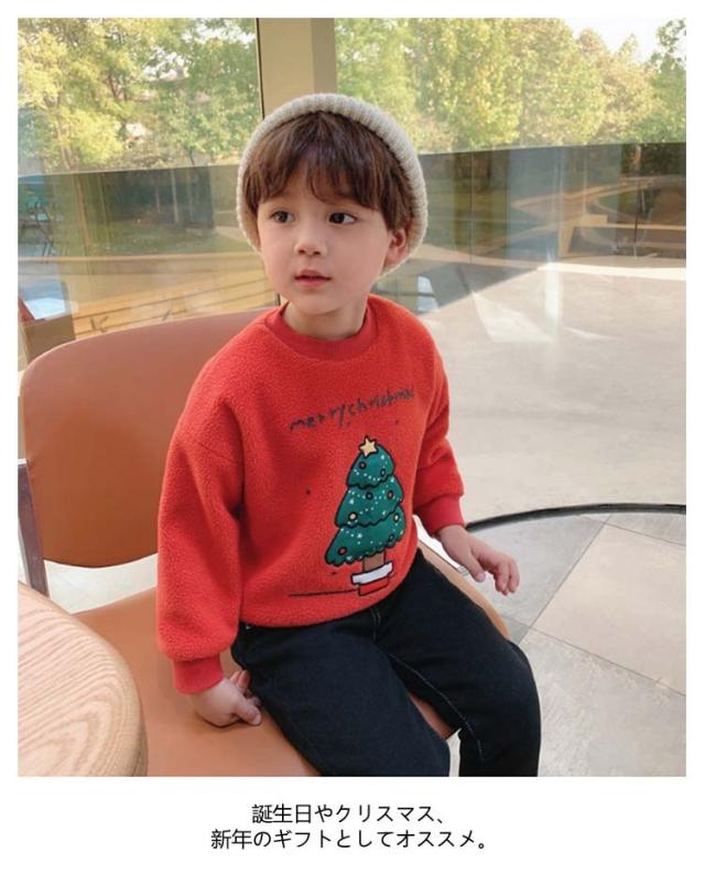裏起毛 クリスマスツリー トレーナー ピカピカ光る ボア 防寒 可愛い サンタ服 クリスマス服 ピカピカ光る 上着 子供服 パーカー 子ども服 暖かい キッズ ボアフリース トップス スウェット 秋冬物 プルオーバー 記念撮影 写真 雰囲気 かわいい