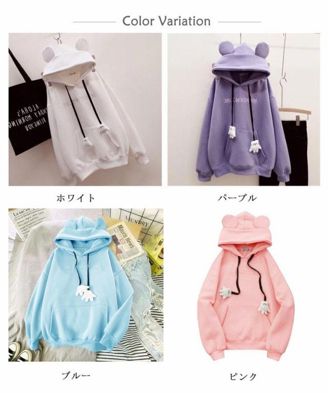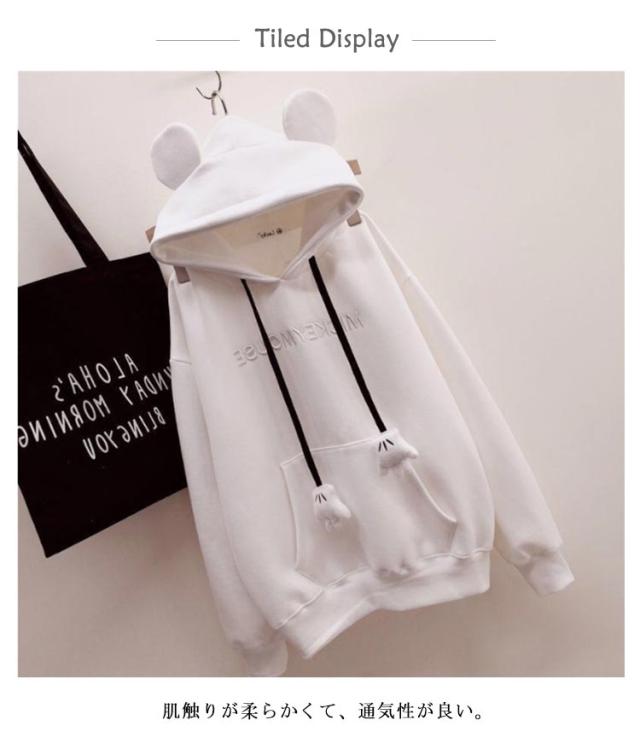韓国 高校生 パーカー レディース パーカー ペアルックパーカー かわいい フード付き トレーナー 長袖 プルオーバー 秋冬 トップス 耳付き ルームウェア ポケット付き 可愛い形 パーカー カジュアル 裏起毛 おしゃれ 通学 通勤 レディース スウェット 部屋着 春 秋 冬